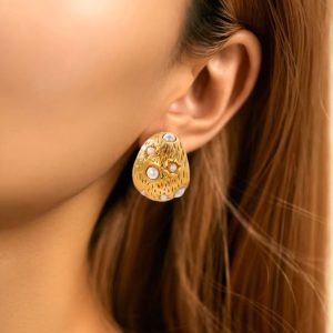 Ατσάλινα Σκουλαρίκια με Πέρλες & Ανάγλυτη Υφή