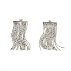 Σκουλαρίκια Ατσάλι Ασημί Με Κρεμαστές Αλυσίδες