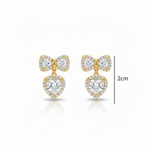 Σκουλαρίκια Ατσάλι με Φιόγκο & Καρδιά Strass ΧρυσόA793A