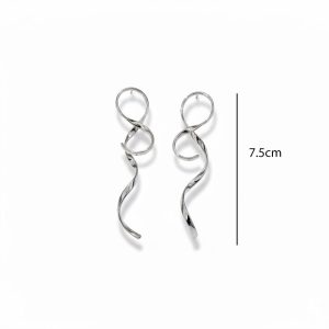 Σκουλαρίκια Ατσάλι Μακρύ Κυματιστό Σχέδιο Ασημί