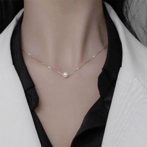 Ατσάλινο Κολιέ Με Πέρλα – Ασημί