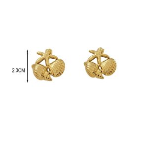 Ατσάλινα Σκουλαρίκια Καρφωτά Με Θαλασσινά Στοιχεία – Χρυσό