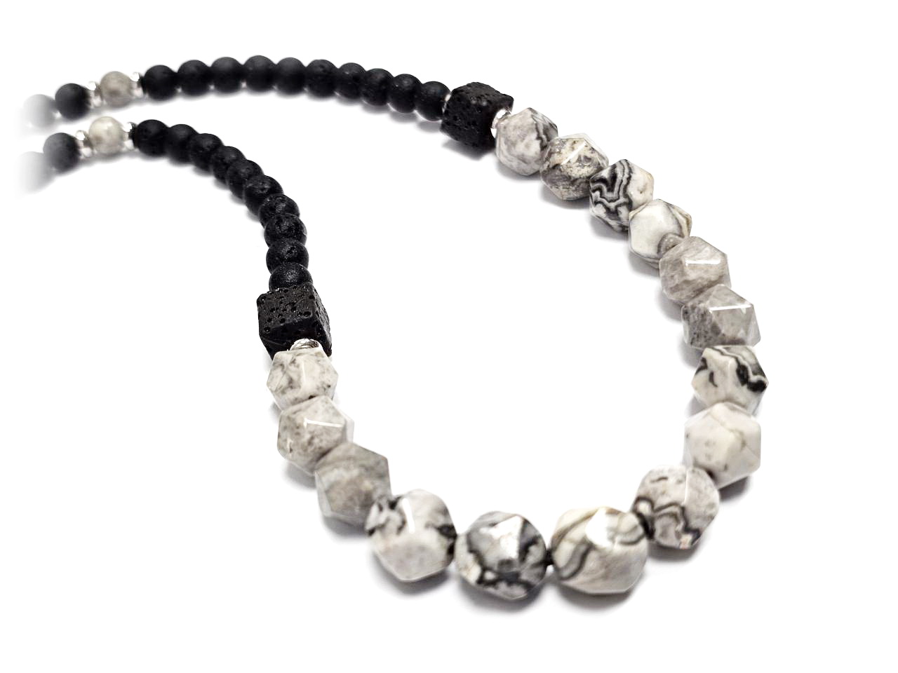 Αντρικό Κολιέ Πέτρα ατσάλι 304, αλυσίδα με λάβα και ίασπη σε χρώμα Ασημί