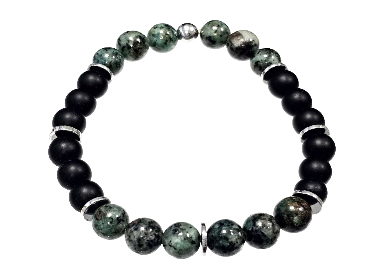 Αντρικό Βραχιόλι Πέτρα ελαστικό 8mm, με ημιπολύτιμες πέτρες και στοιχεία από αιματίτη
