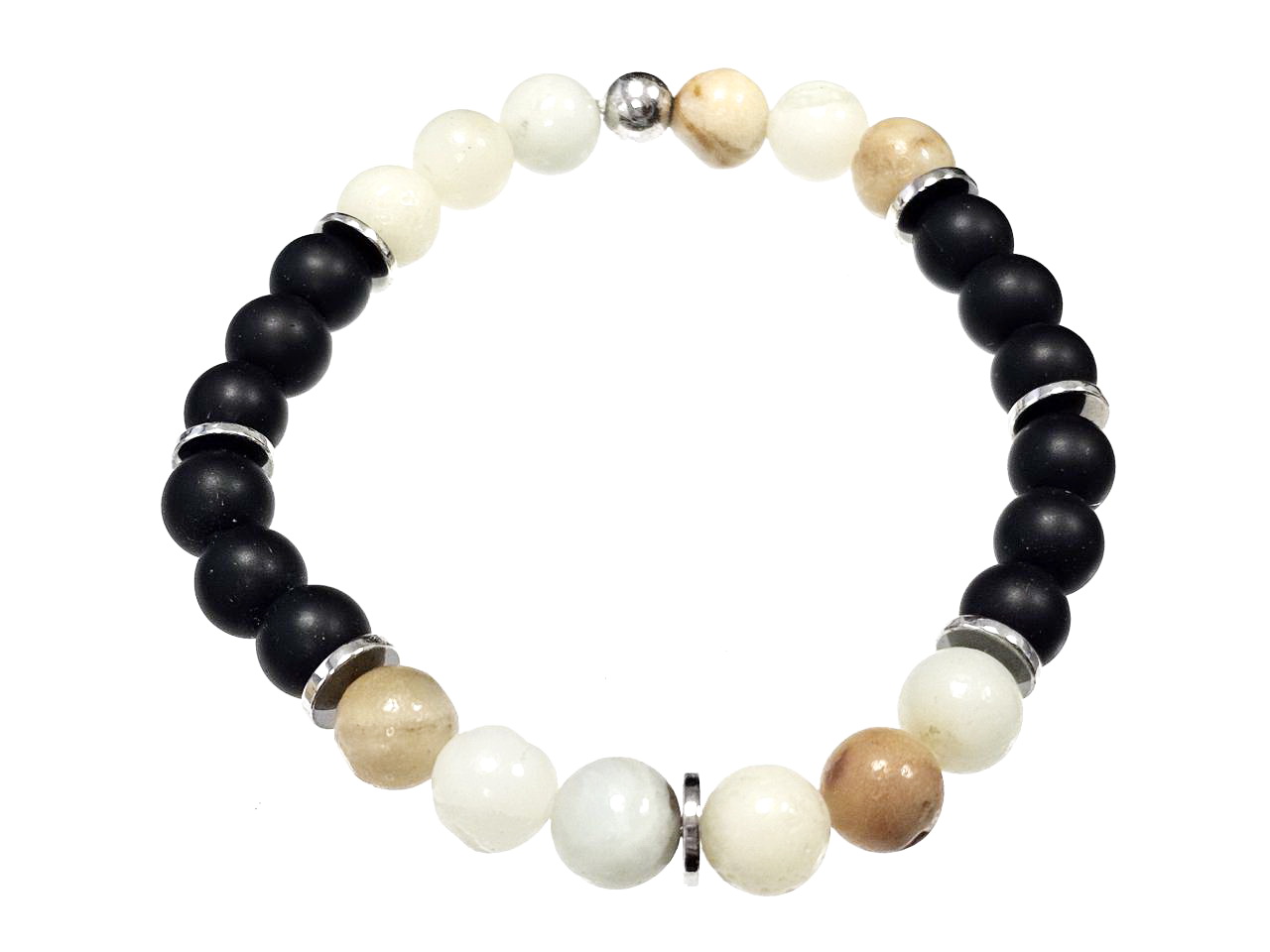 Αντρικό Βραχιόλι Πέτρα ελαστικό 8mm, με ημιπολύτιμες πέτρες και στοιχεία από αιματίτη