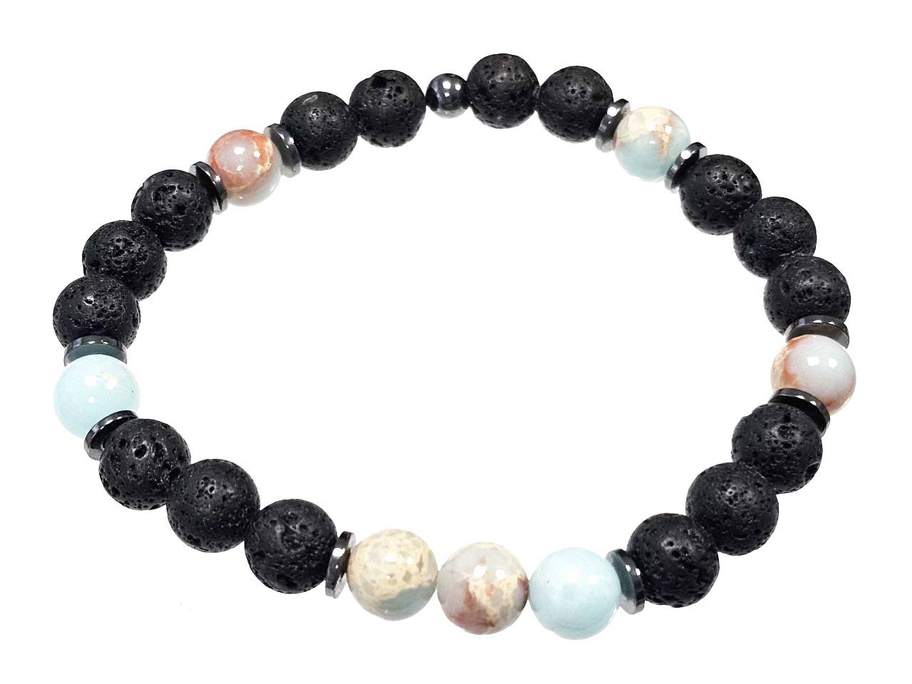 Αντρικό Βραχιόλι Πέτρα ελαστικό 8mm, με ημιπολύτιμες πέτρες και στοιχεία από αιματίτη