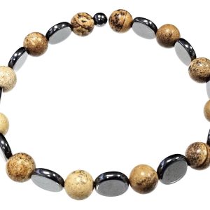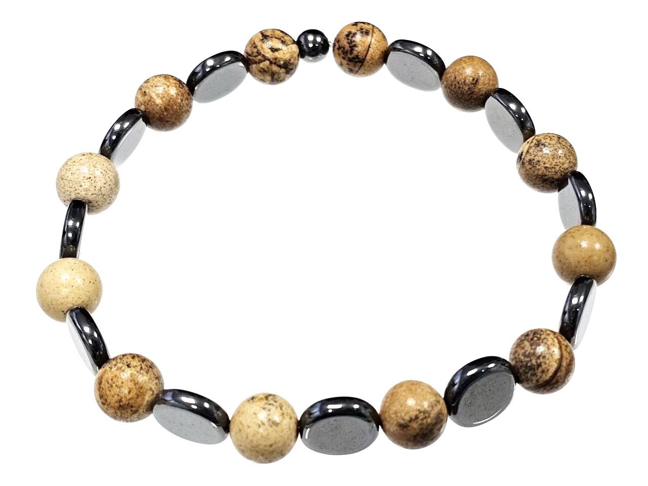 Αντρικό Βραχιόλι Πέτρα ελαστικό 8mm, με ημιπολύτιμες πέτρες και στοιχεία από αιματίτη