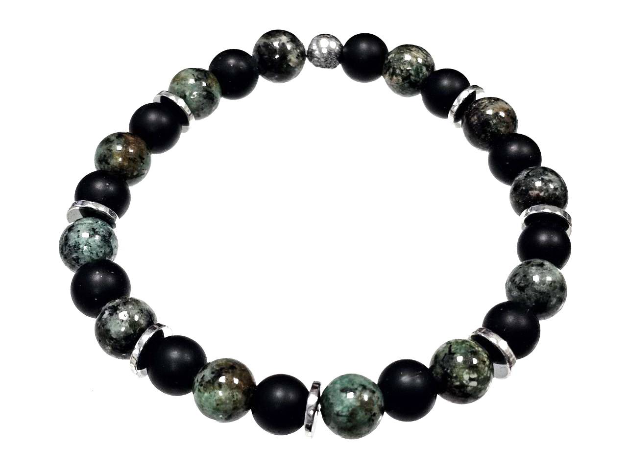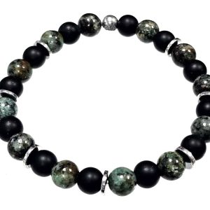 Αντρικό Βραχιόλι Πέτρα ελαστικό 8mm, με ημιπολύτιμες πέτρες και στοιχεία από αιματίτη