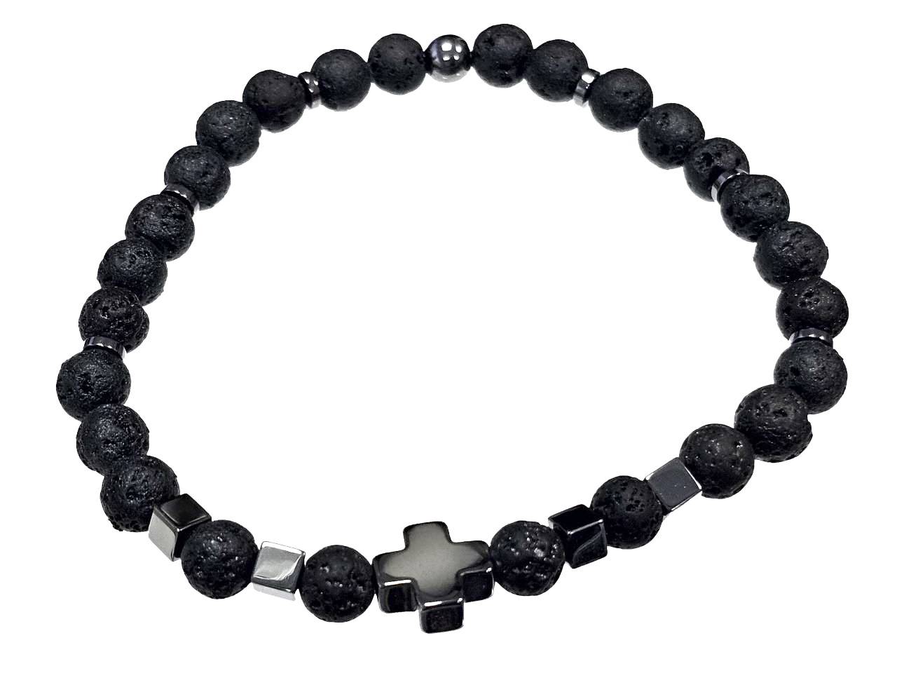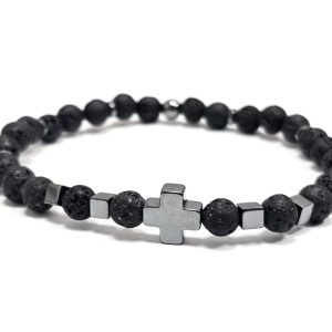 Αντρικό Βραχιόλι Πέτρα ελαστικό, με λάβα και στοιχεία από αιματίτη