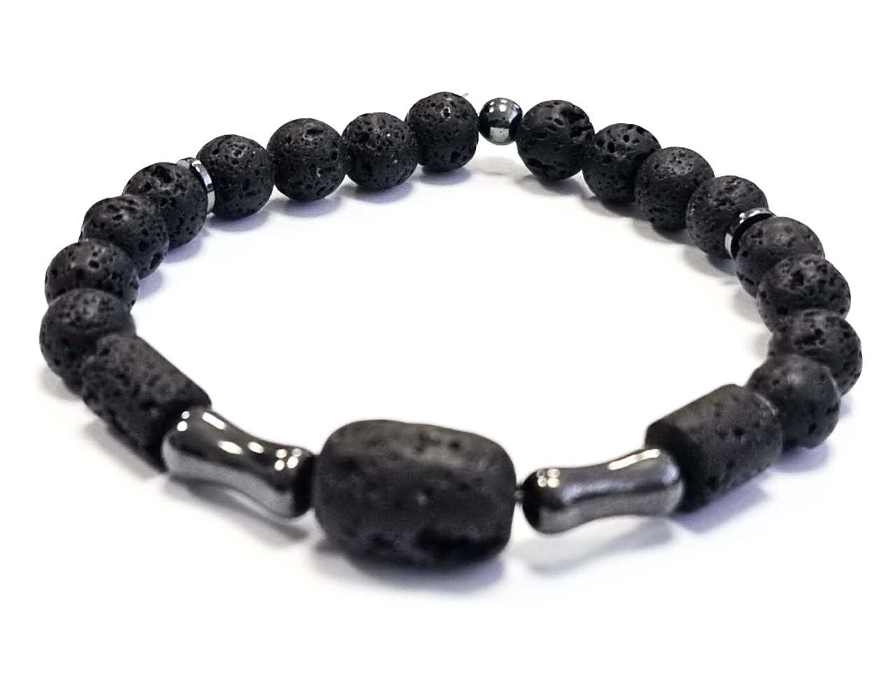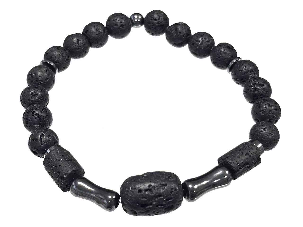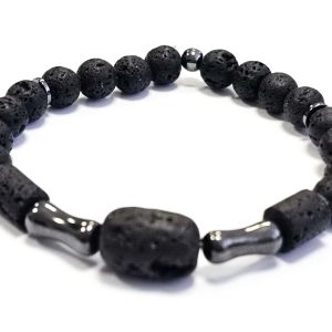 Αντρικό Βραχιόλι Πέτρα ελαστικό, με λάβα και στοιχεία από αιματίτη