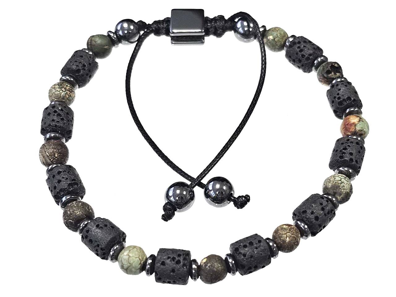 Αντρικό Βραχιόλι Πέτρα μακραμέ 6mm, με ημιπολύτιμες πέτρες και στοιχεία από αιματίτη