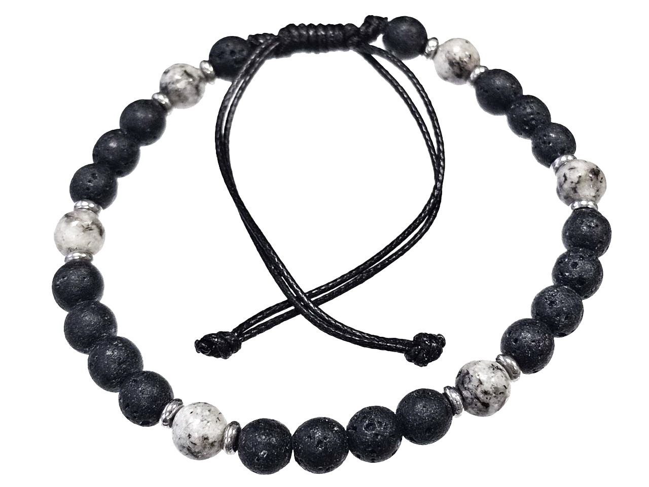 Αντρικό Βραχιόλι Πέτρα μακραμέ 6mm, με ημιπολύτιμες πέτρες και στοιχεία από ατσάλι