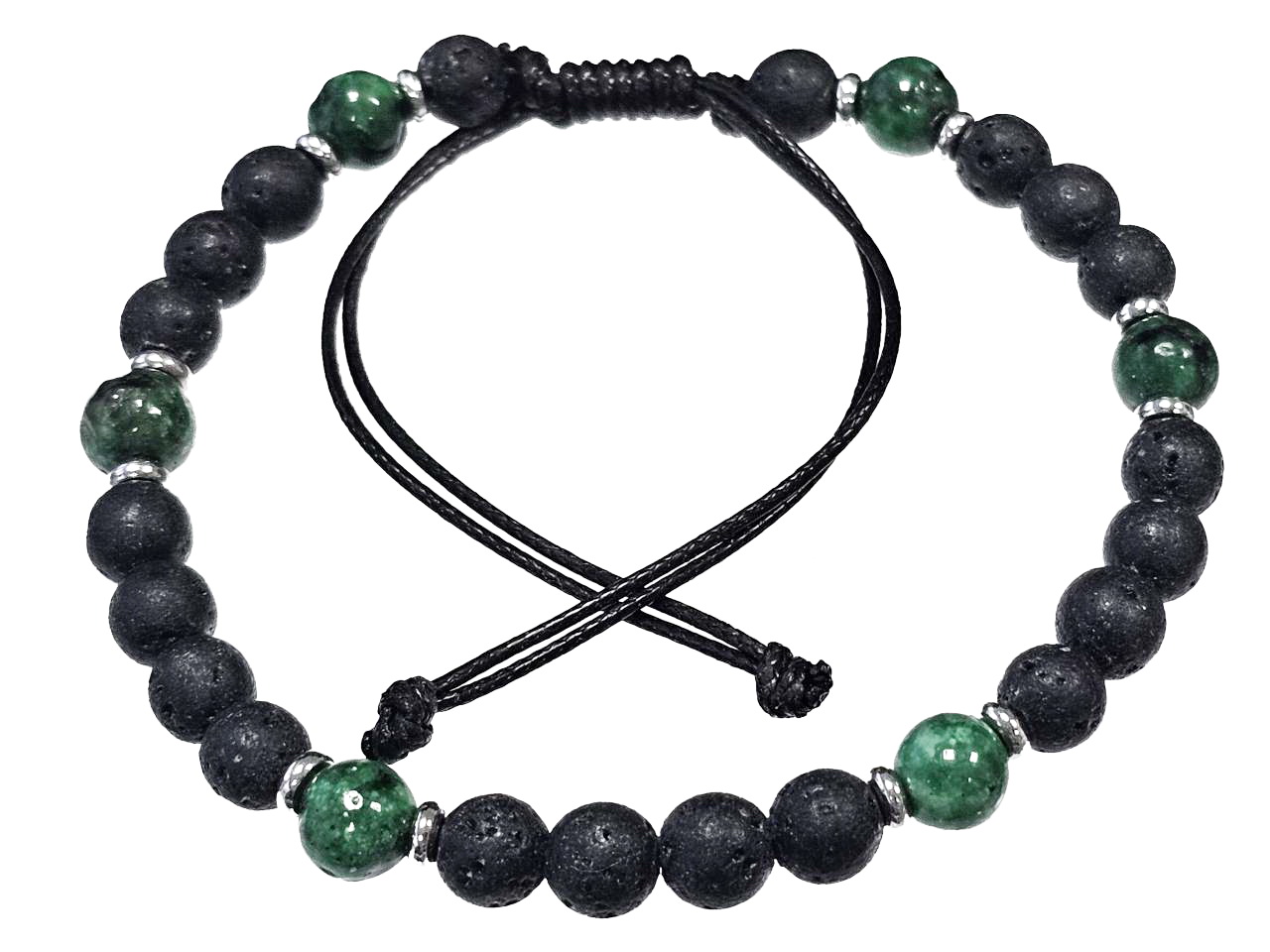 Αντρικό Βραχιόλι Πέτρα μακραμέ 6mm, με ημιπολύτιμες πέτρες και στοιχεία από ατσάλι