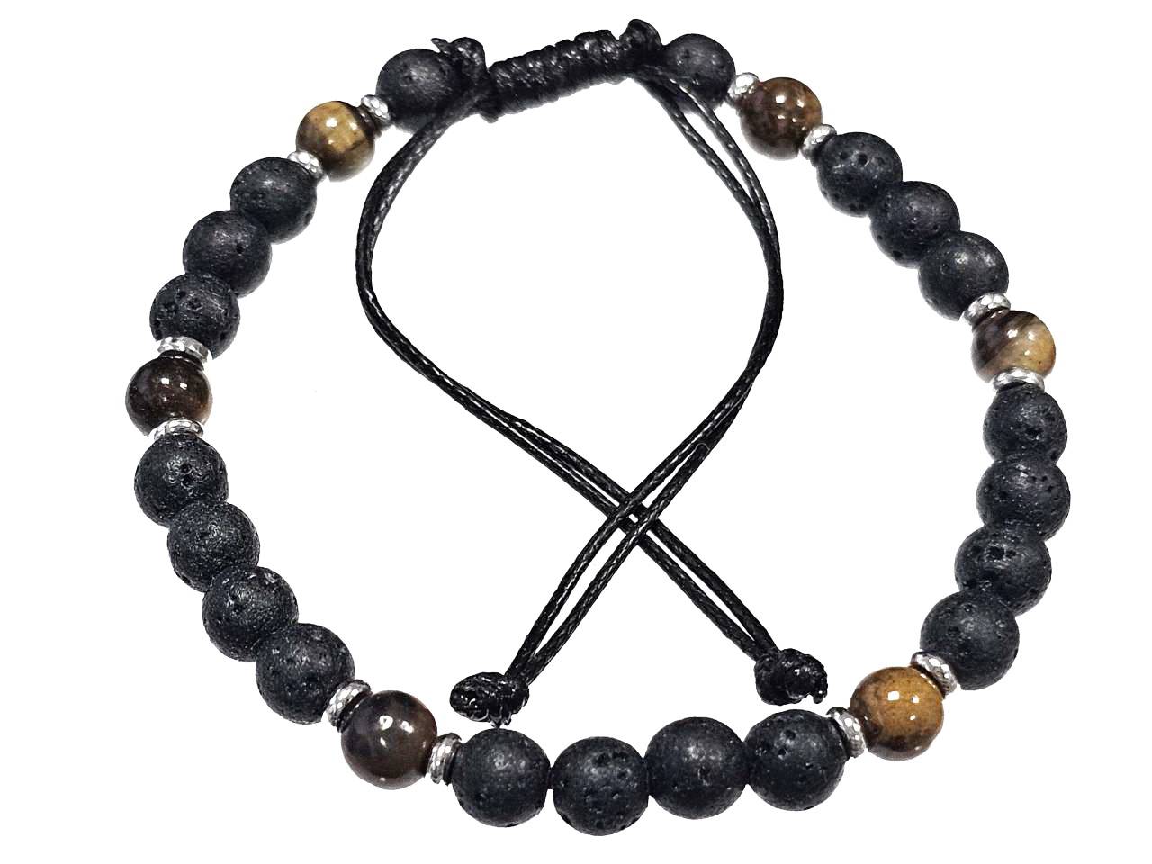 Αντρικό Βραχιόλι Πέτρα μακραμέ 6mm, με ημιπολύτιμες πέτρες και στοιχεία από ατσάλι και χρώμα Χρυσαφί