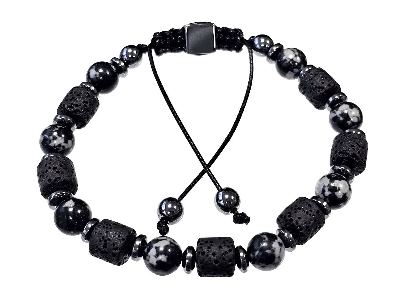 Αντρικό Βραχιόλι Πέτρα μακραμέ 8mm, με ημιπολύτιμες πέτρες και στοιχεία από αιματίτη