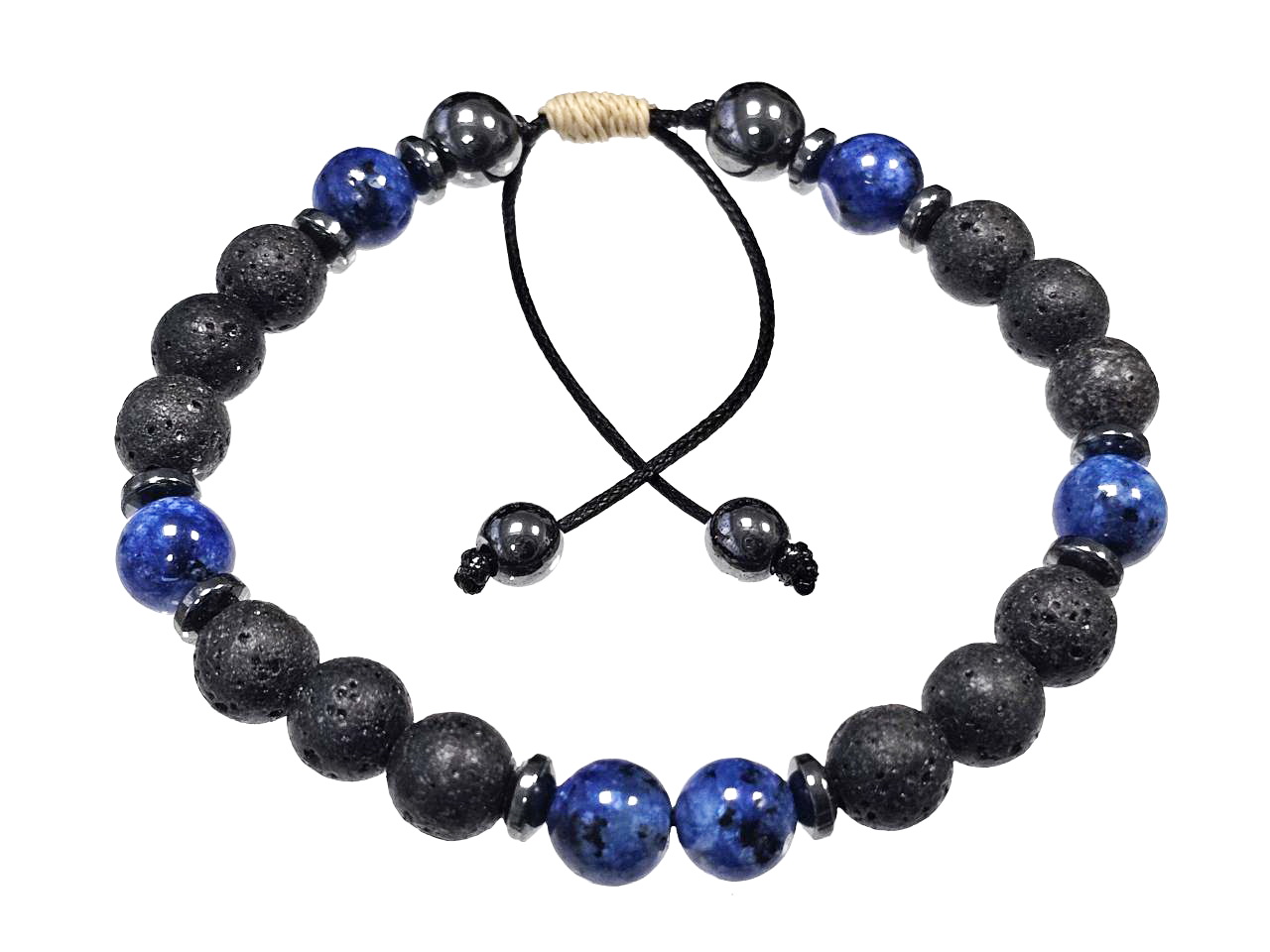 Αντρικό Βραχιόλι Πέτρα μακραμέ 8mm, με ημιπολύτιμες πέτρες και στοιχεία από αιματίτη