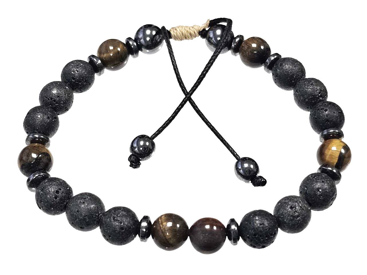 Αντρικό Βραχιόλι Πέτρα μακραμέ 8mm, με ημιπολύτιμες πέτρες και στοιχεία από αιματίτη