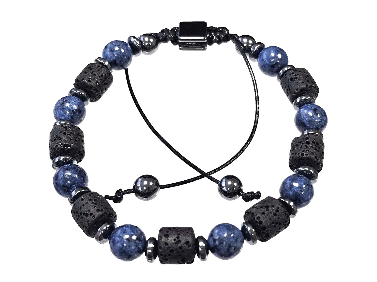 Αντρικό Βραχιόλι Πέτρα μακραμέ 8mm, με ημιπολύτιμες πέτρες και στοιχεία από αιματίτη