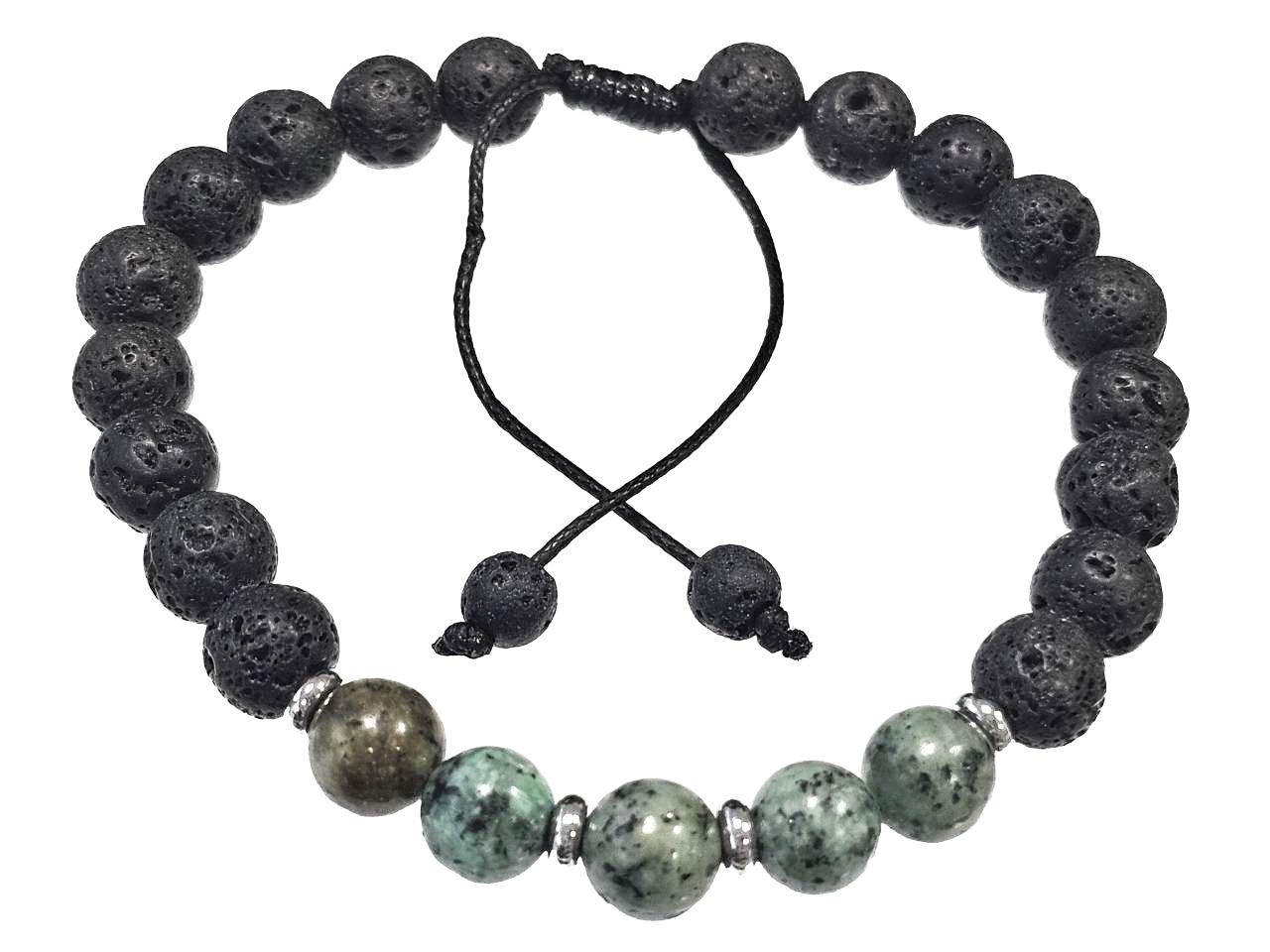 Αντρικό Βραχιόλι Πέτρα μακραμέ 8mm, με ημιπολύτιμες πέτρες και στοιχεία από ατσάλι
