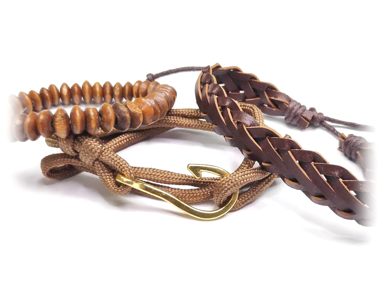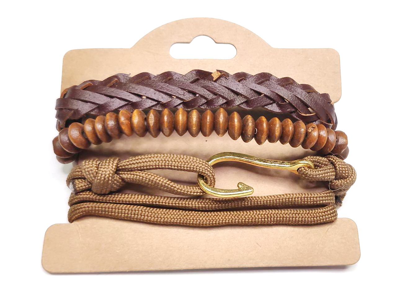 Αντρικό Βραχιόλι Σχοινί και δέρμα PU, σέτ 3 τεμαχίων σε χρώμα Καφέ
