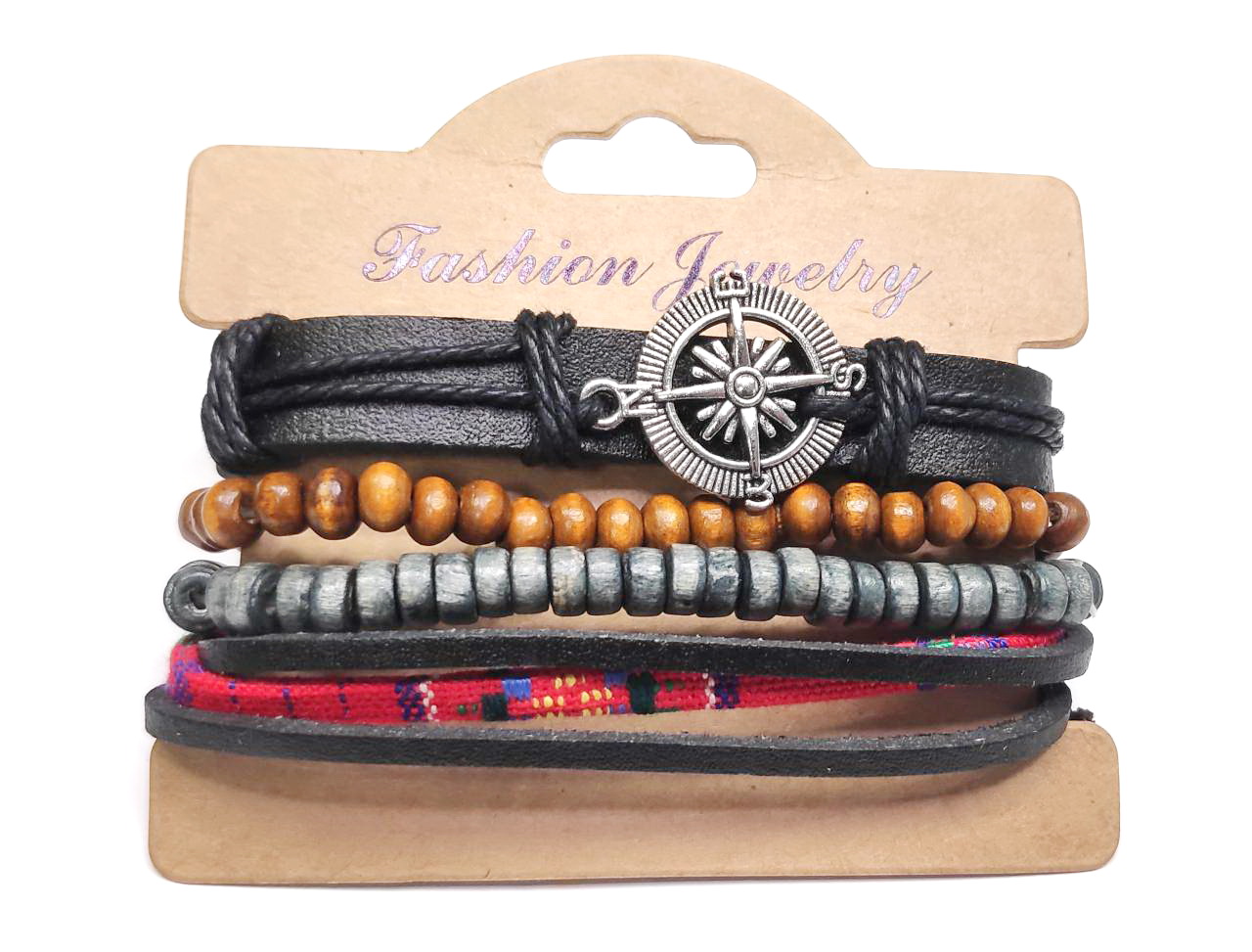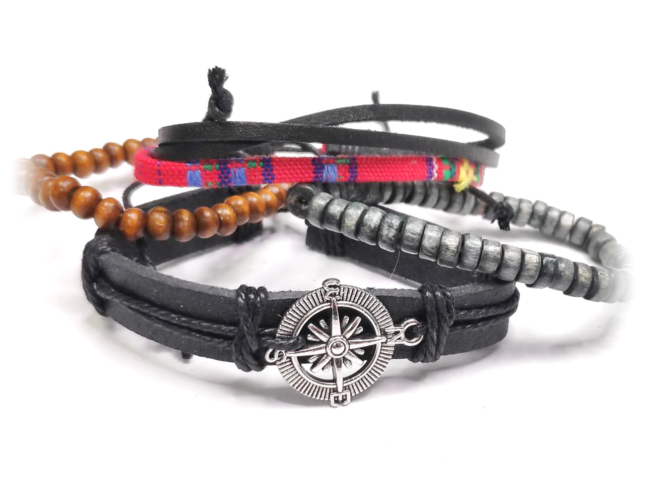 Αντρικό Βραχιόλι Σχοινί και δέρμα PU, σέτ 4 τεμαχίων σε χρώμα Πολύχρωμο