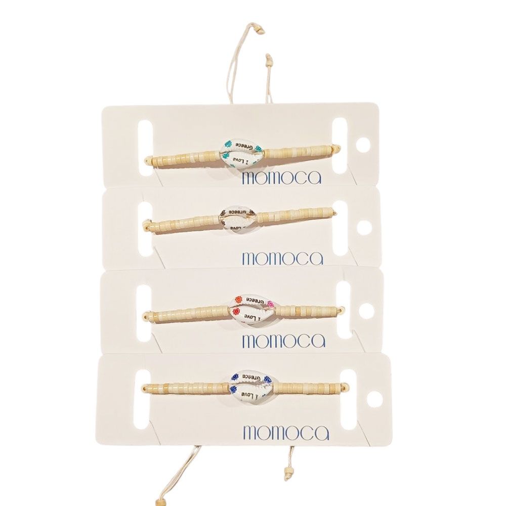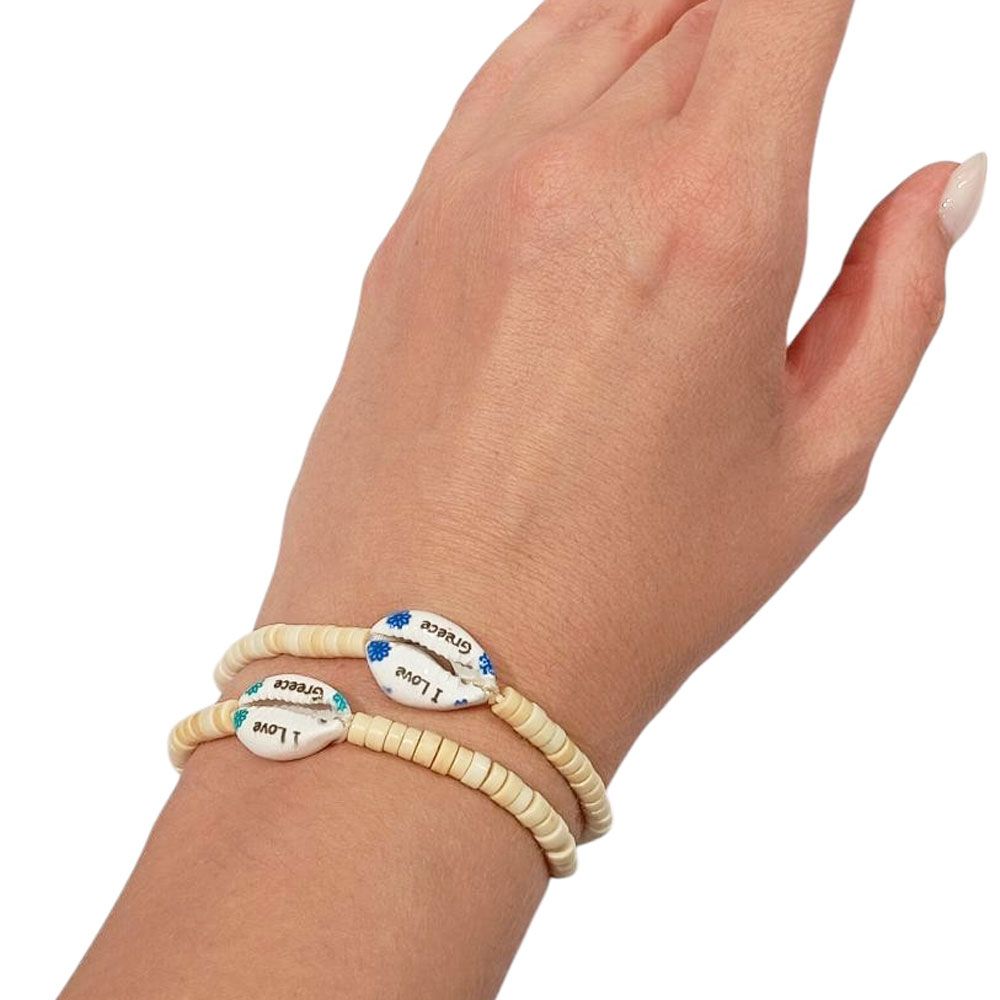 Χειροποίητα μακραμέ βραχιόλια σε διάφορα καλοκαιρινά σχέδια και χρώματα, διακοσμημένα με κοχύλι, πολύχρωμες χάντρες και το μήνυμα “I Love Greece”. Περιλαμβάνονται 12 τεμάχια, ιδανικά για τουριστικά καταστήματα, καλοκαιρινά events ή δώρα. Ρυθμιζόμενο μέγεθος για άνετη εφαρμογή σε κάθε καρπό.