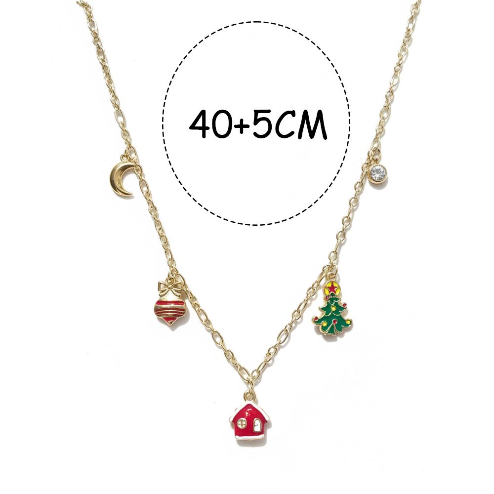 Γιορτινό και χαρούμενο κολιέ από ανοξείδωτο ατσάλι, με πολύχρωμα χριστουγεννιάτικα charms όπως δεντράκι, σπιτάκι, φεγγάρι και στολίδι.Ένα παιχνιδιάρικο σχέδιο που προσθέτει λάμψη και κέφι στις χειμερινές εμφανίσεις σου!Ανθεκτικό και υποαλλεργικό, ιδανικό για καθημερινή χρήση — δεν μαυρίζει και παραμένει λαμπερό. Υλικό: Ανοξείδωτο ατσάλι (Stainless Steel)Χρώμα: Χρυσό με πολύχρωμα στοιχείαΜήκος: 40 + 5 cm