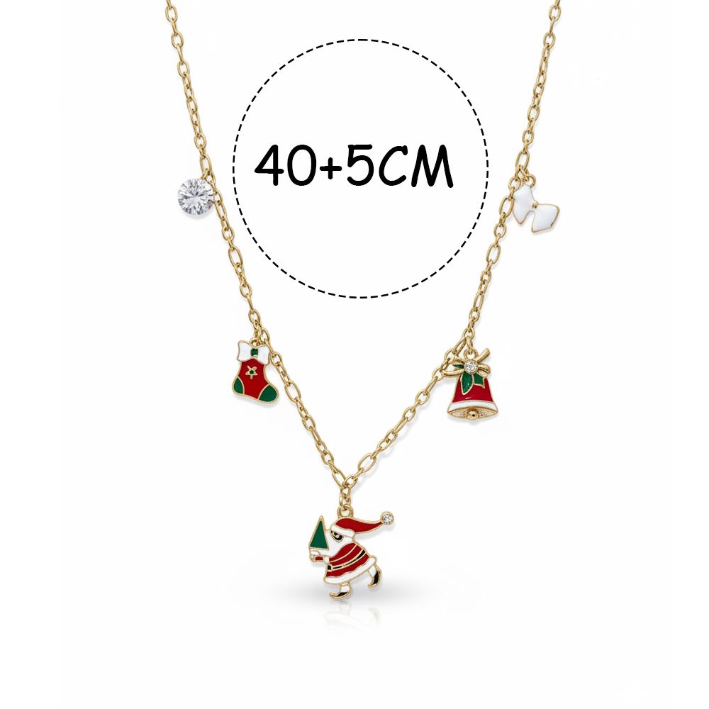 Γιορτινό ατσάλινο κολιέ με χαριτωμένα charms – Άγιο Βασίλη, κάλτσα και καμπάνα. Ένα λαμπερό και παιχνιδιάρικο κόσμημα που αποπνέει τη μαγεία των Χριστουγέννων. Κατασκευασμένο από ανθεκτικό ανοξείδωτο ατσάλι με σμάλτο σε κόκκινες, πράσινες και λευκές αποχρώσεις και λαμπερή χρυσή βάση. Ιδανικό για να ολοκληρώσει τις γιορτινές σας εμφανίσεις ή ως ξεχωριστό δώρο. Χαρακτηριστικά: Υλικό: Ανοξείδωτο ατσάλι Σχέδιο: Charms Άγιου Βασίλη, κάλτσας & καμπάνας Χρώμα: Χρυσό με κόκκινες, πράσινες & λευκές λεπτομέρειες Ρυθμιζόμενο μήκος Ιδανικό για γιορτινές εμφανίσεις ή δώρο