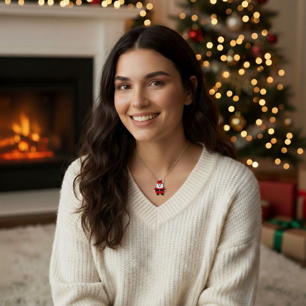 Χειροποίητο ατσάλινο κολιέ με μοτίφ Άγιου Βασίλη από χάντρες Miyuki. Ένα γλυκό και γιορτινό αξεσουάρ που αποπνέει τη μαγεία των Χριστουγέννων και προσθέτει χαρούμενη διάθεση σε κάθε εμφάνιση. Ιδανικό και ως χριστουγεννιάτικο δώρο για μικρούς και μεγάλους! Υλικό: Ανοξείδωτο ατσάλι & χάντρες Miyuki Μήκος: 40 + 5 cm Δεν μαυρίζει, δεν προκαλεί αλλεργίες Ανθεκτικό και ελαφρύ Ιδανικό για τη γιορτινή περίοδο