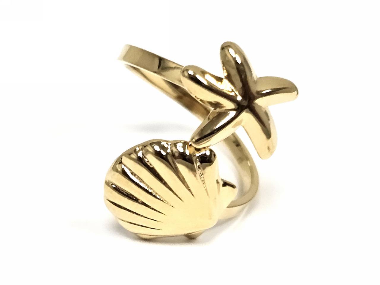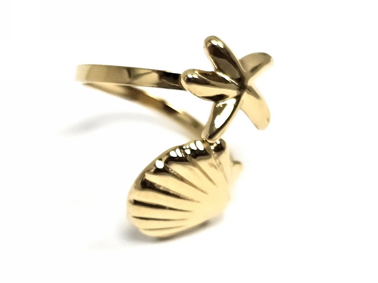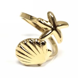 Δαχτυλίδι Ατσάλι 316L, 316L, με αστερία και κοχύλι σε χρώμα Χρυσαφί
