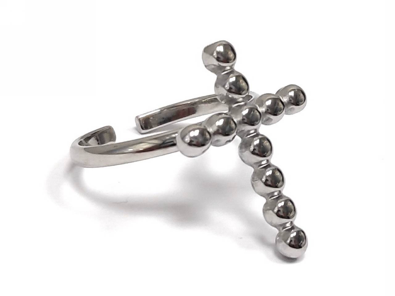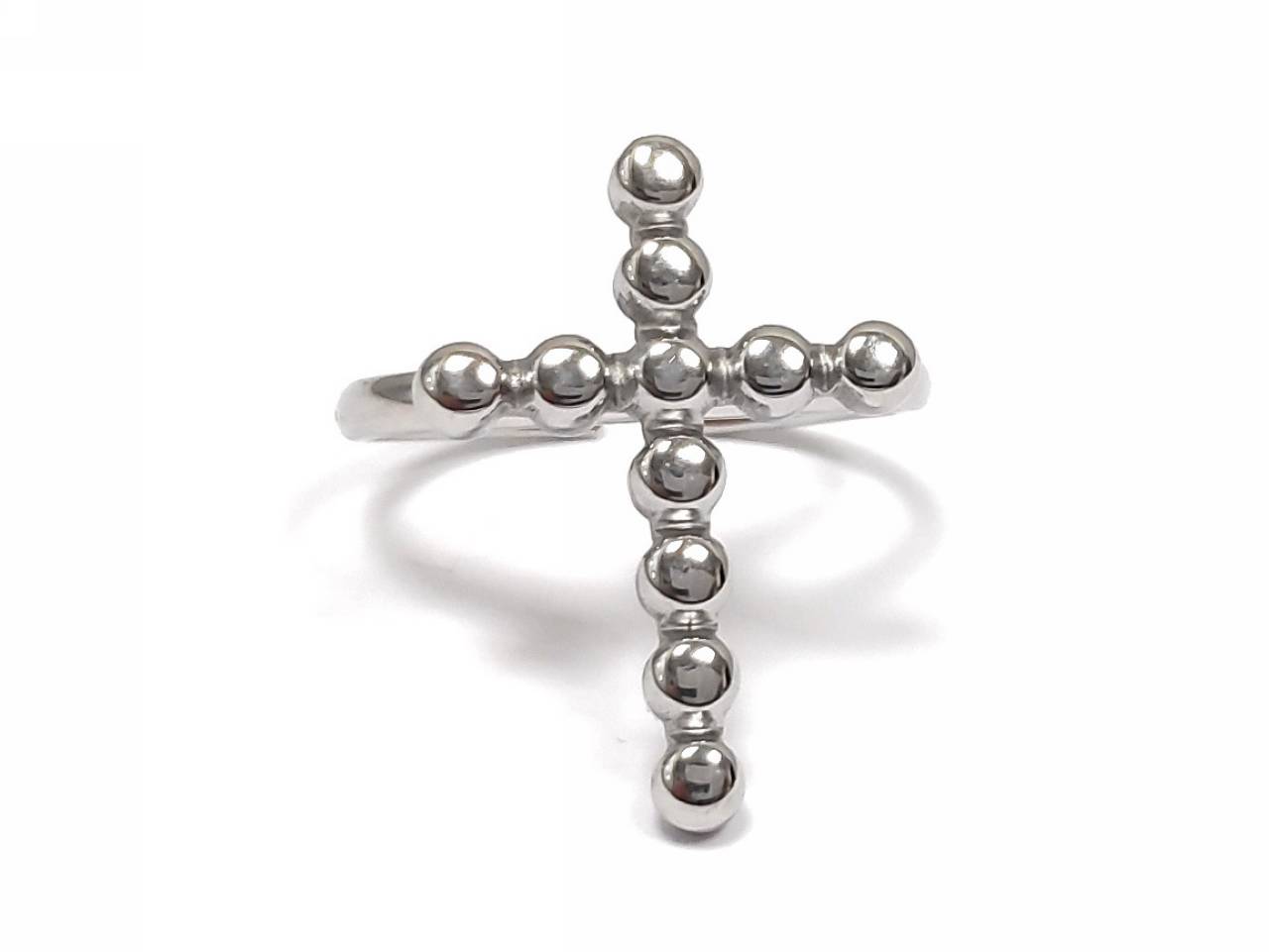 Δαχτυλίδι Ατσάλι 316L, σταυρός σε χρώμα Ασημί