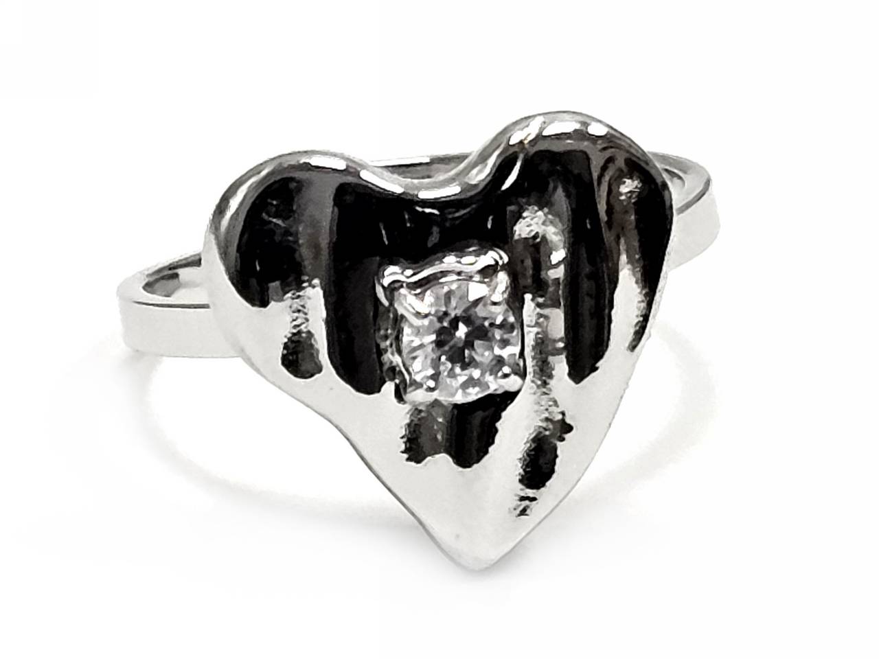 Δαχτυλίδι Ατσάλι 316L, καρδιά με στρας σε χρώμα Ασημί
