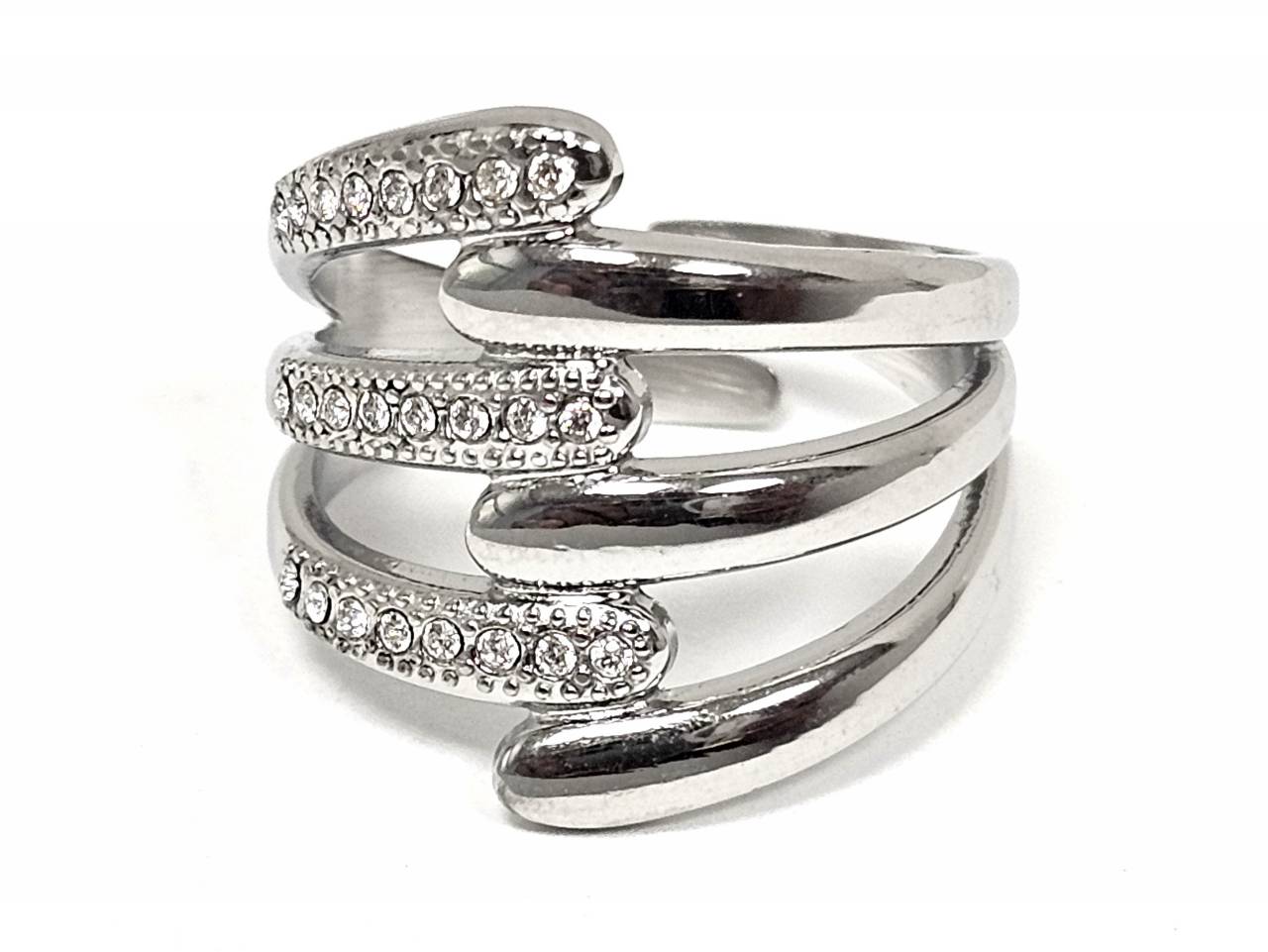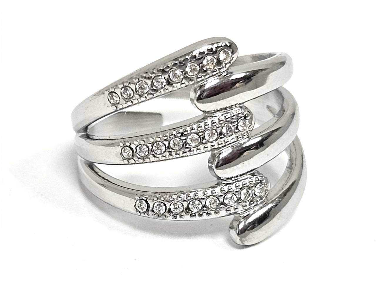 Δαχτυλίδι Ατσάλι 316L, με στρας σε χρώμα Ασημί