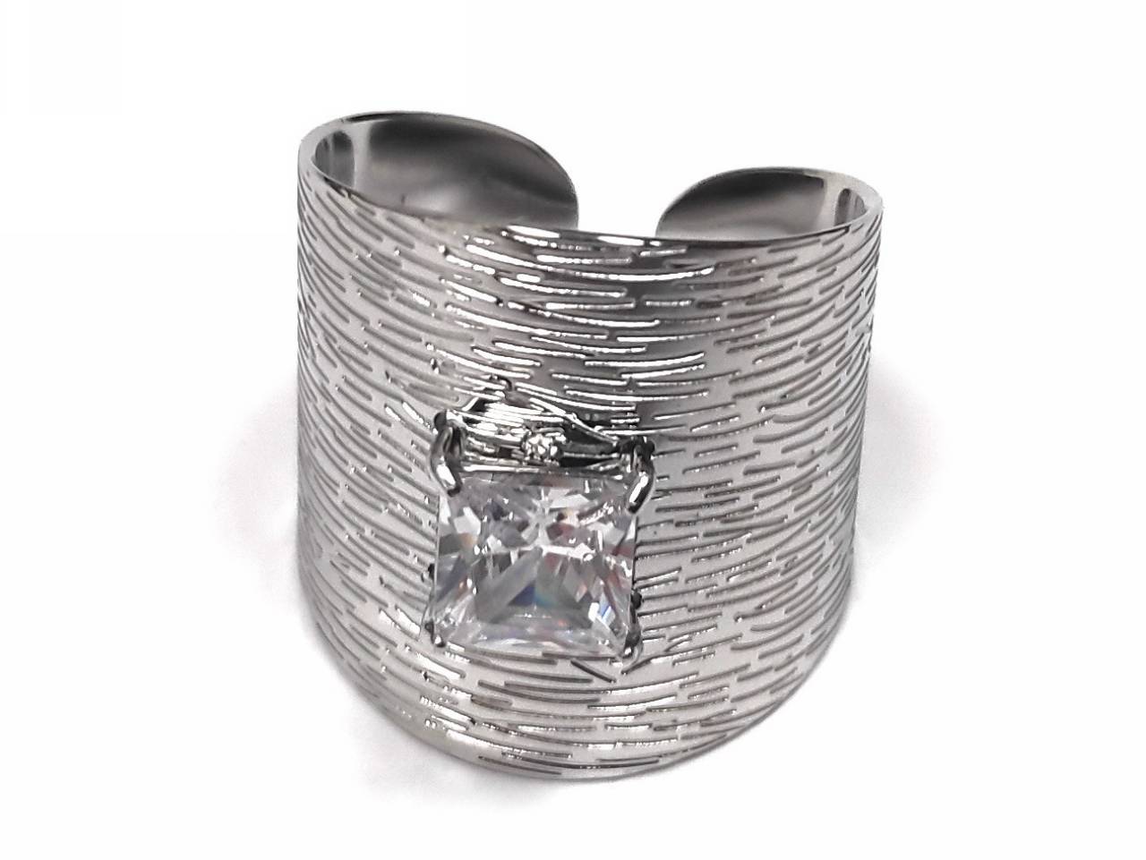 Δαχτυλίδι Ατσάλι 316L, με στρας σε χρώμα Ασημί