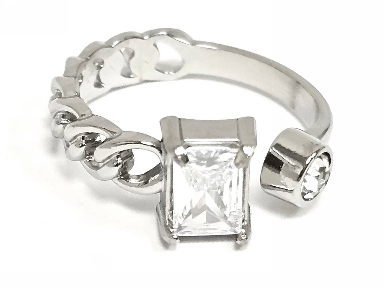 Δαχτυλίδι Ατσάλι 316L, με στρας σε χρώμα Ασημί