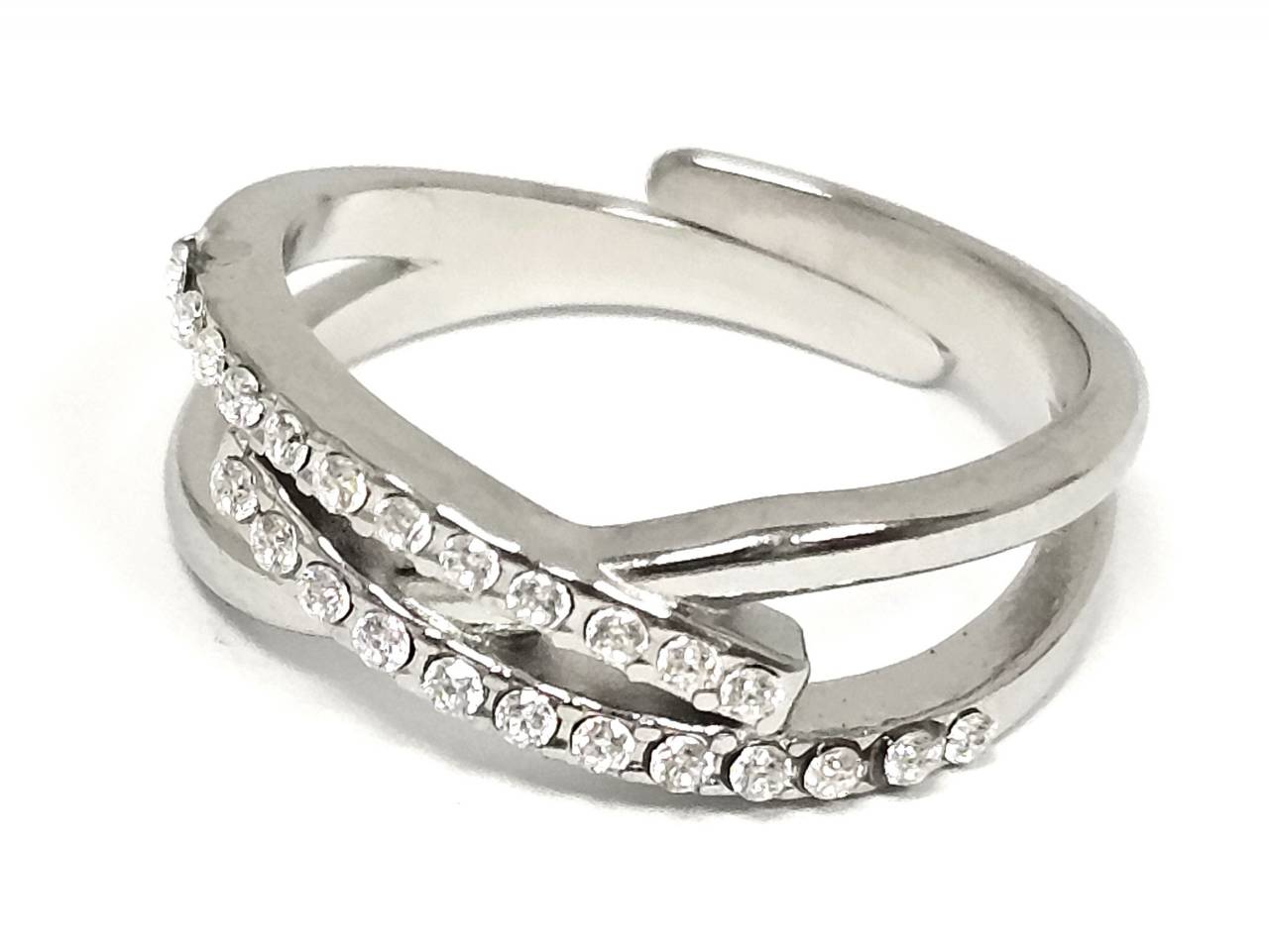 Δαχτυλίδι Ατσάλι 316L, με στρας σε χρώμα Ασημί