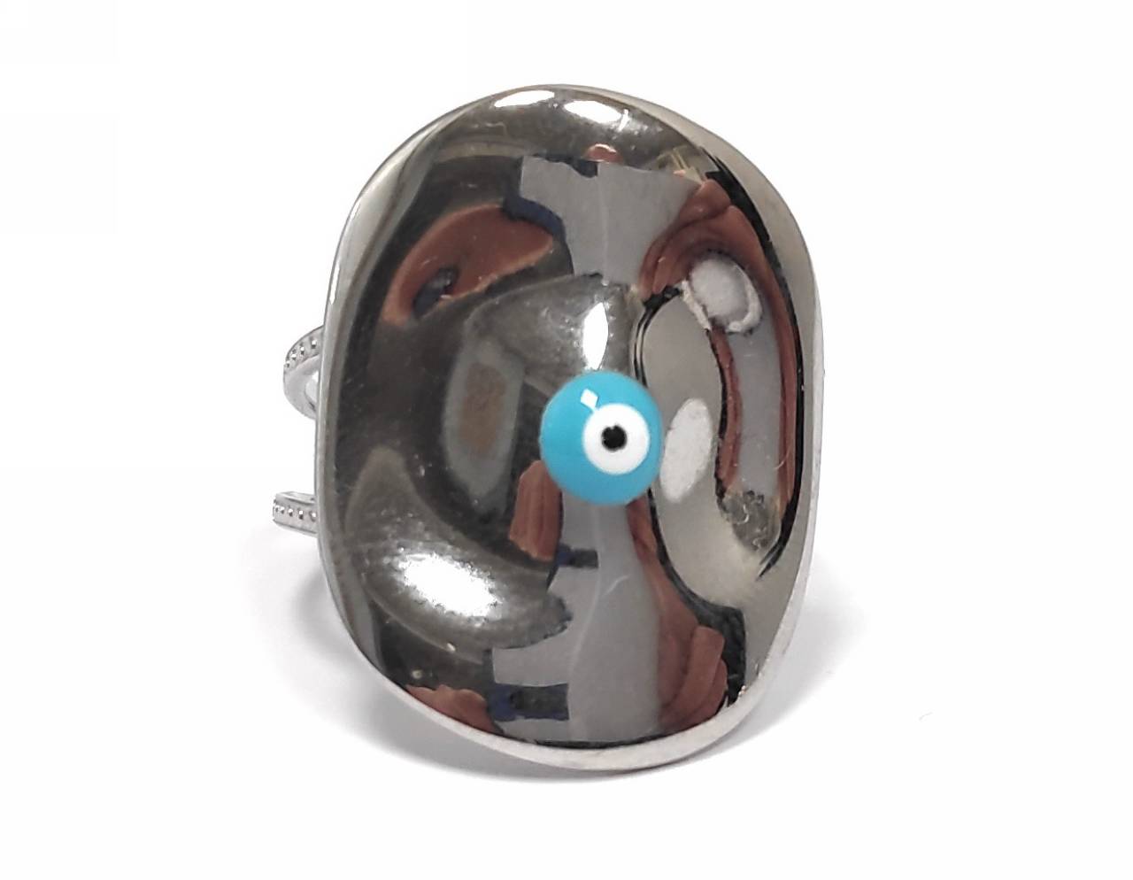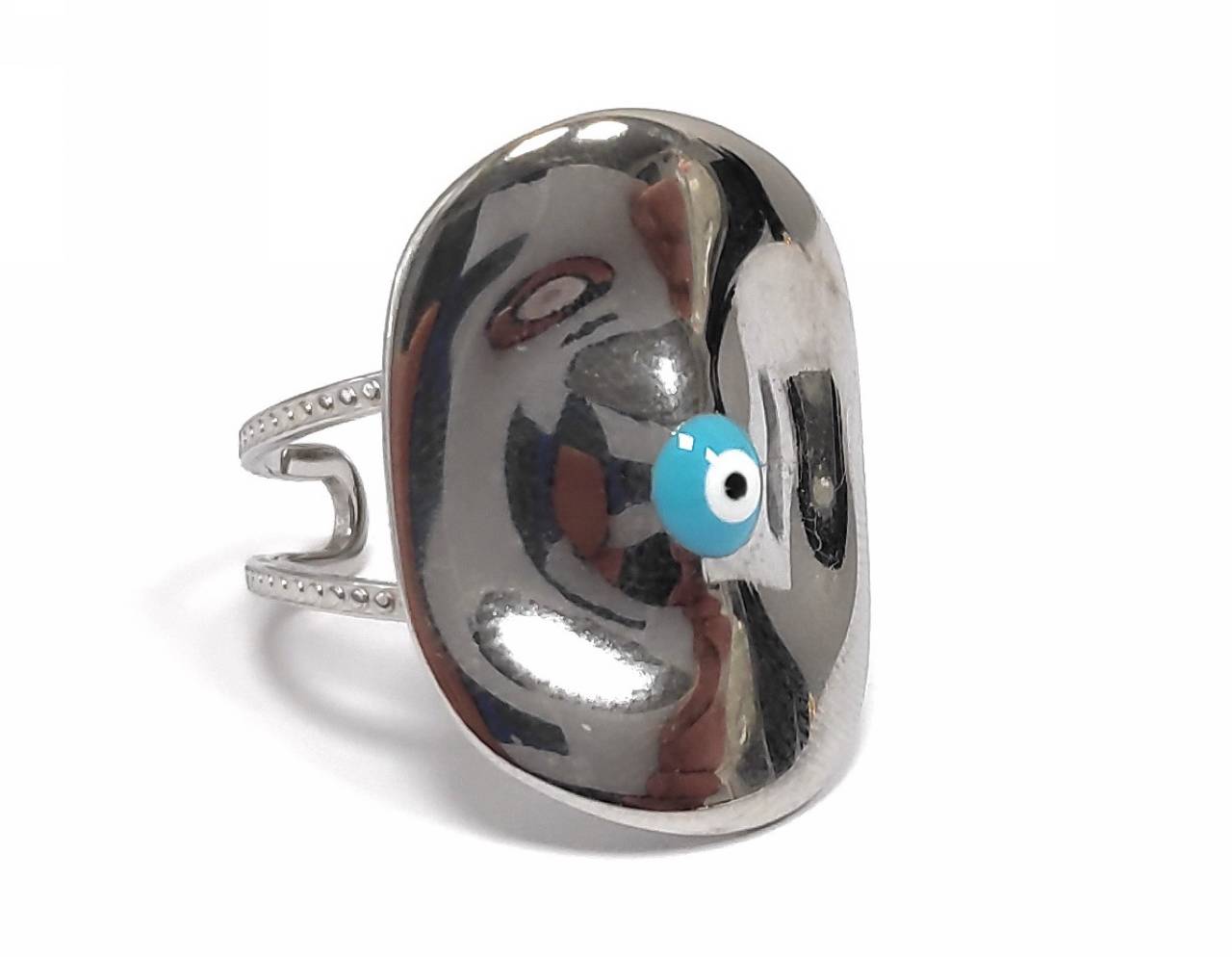 Δαχτυλίδι Ατσάλι 316L, με μάτι σε χρώμα Ασημί