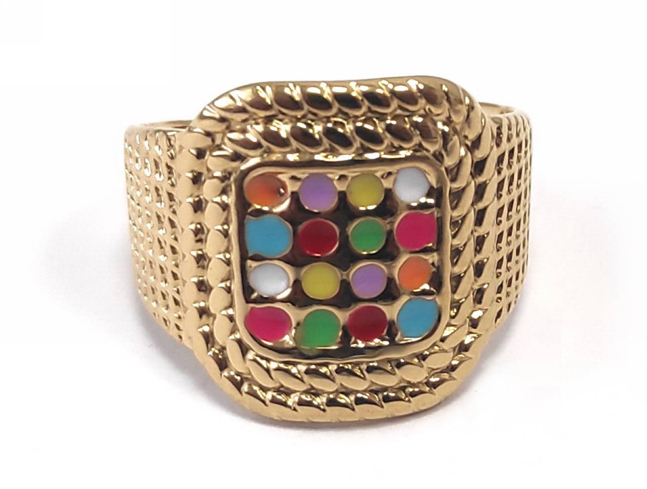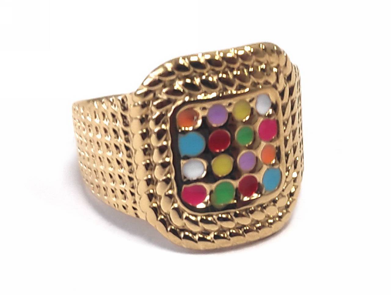 Δαχτυλίδι Ατσάλι 316L,με πολύχρωμο σμάλτο σε χρώμα Χρυσαφί