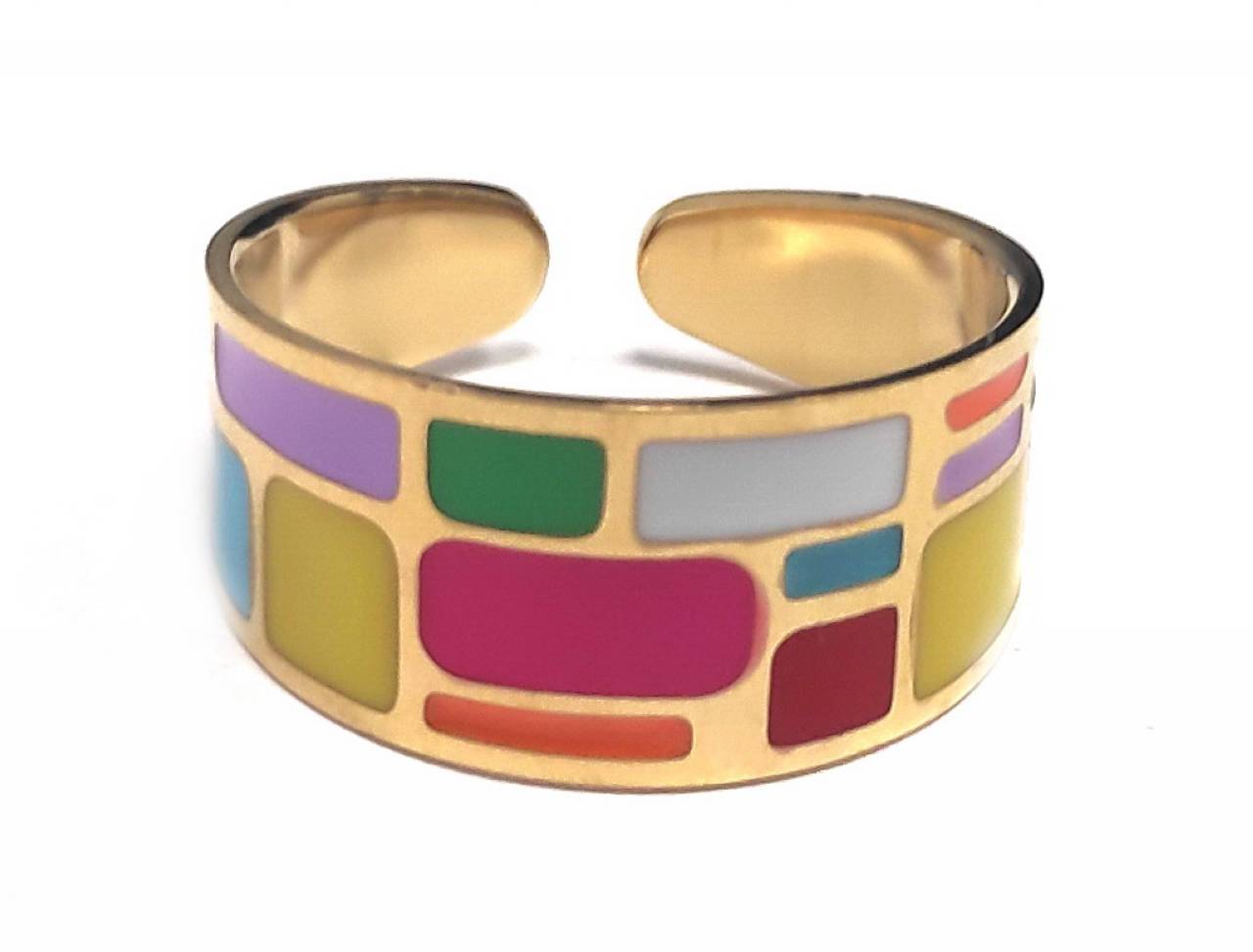 Δαχτυλίδι Ατσάλι 316L,με πολύχρωμο σμάλτο σε χρώμα Χρυσαφί
