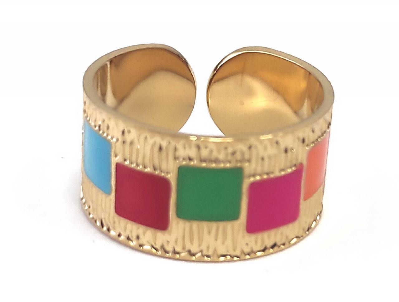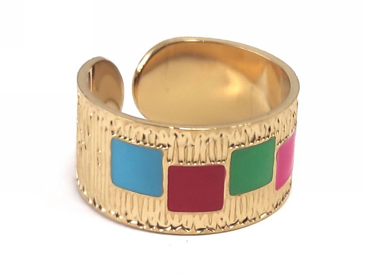 Δαχτυλίδι Ατσάλι 316L,με πολύχρωμο σμάλτο σε χρώμα Χρυσαφί