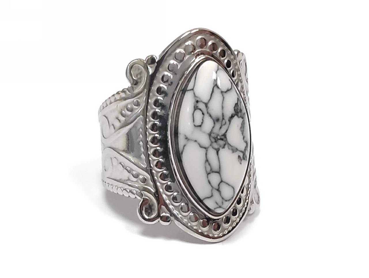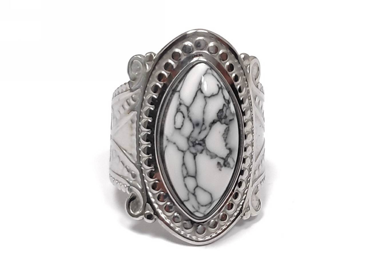 Δαχτυλίδι Πέτρα 316L, με χαολίτη σε χρώμα Ασημί
