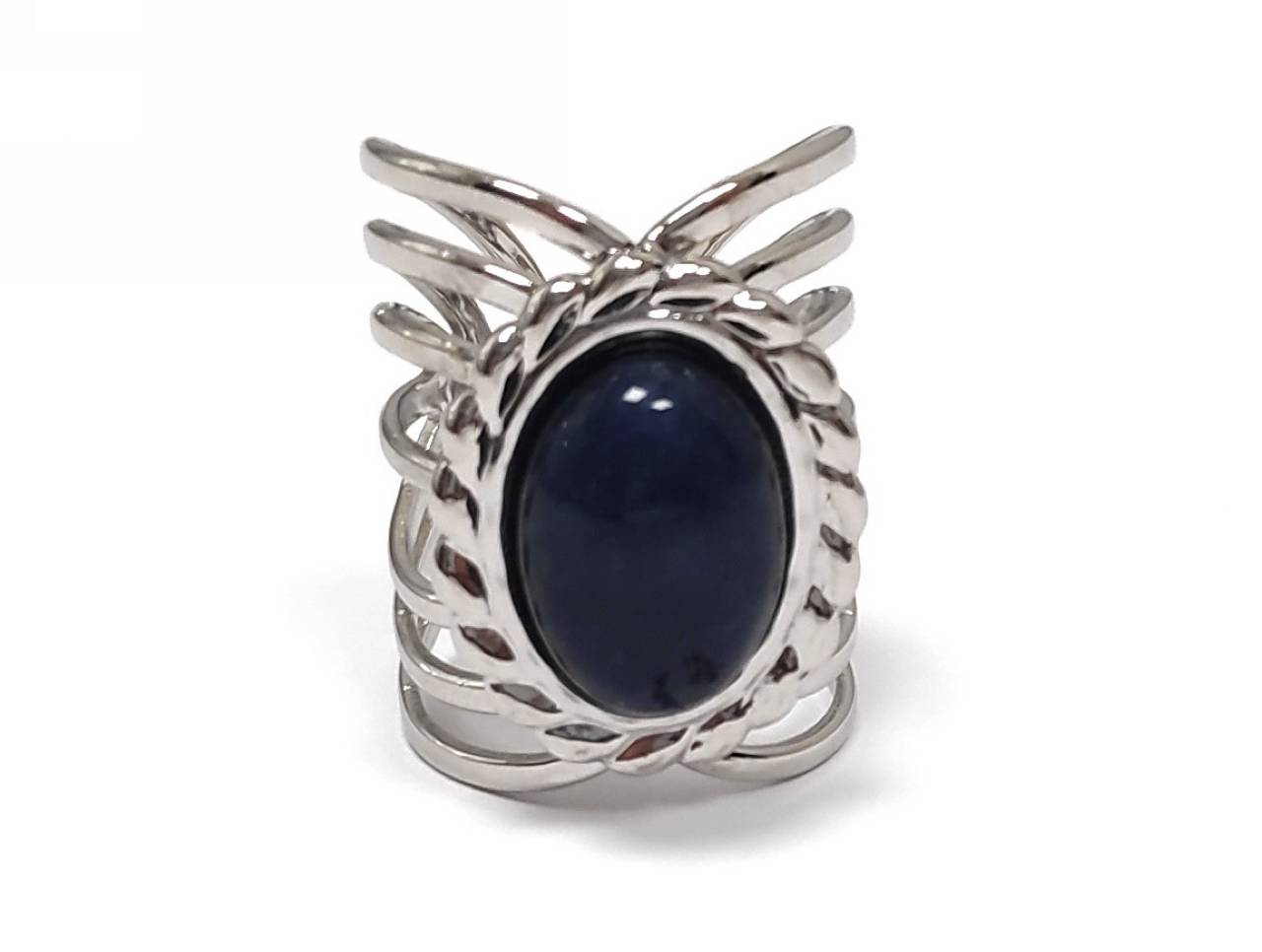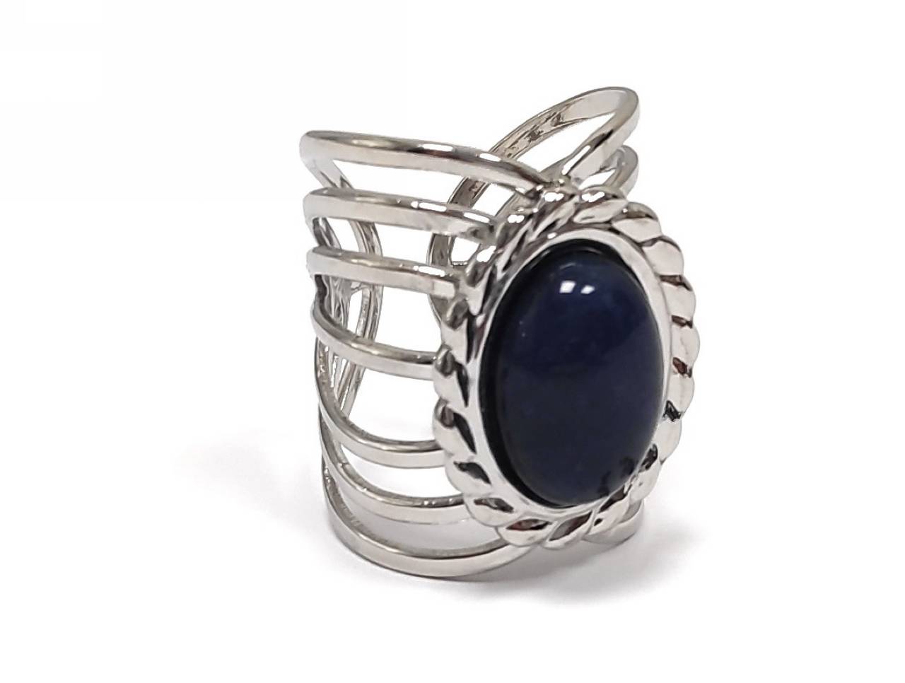 Δαχτυλίδι Πέτρα 316L, με Lapis σε χρώμα Ασημί