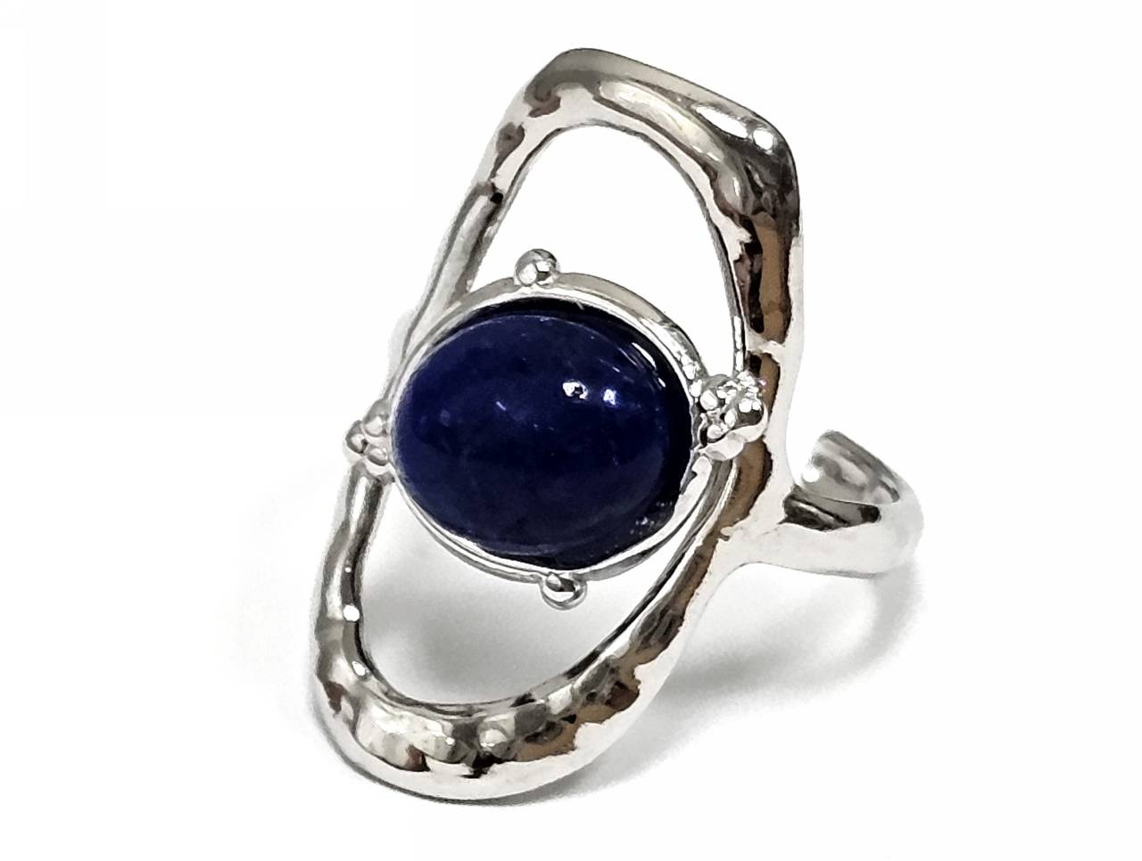 Δαχτυλίδι Πέτρα 316L, με Lapis σε χρώμα Ασημί