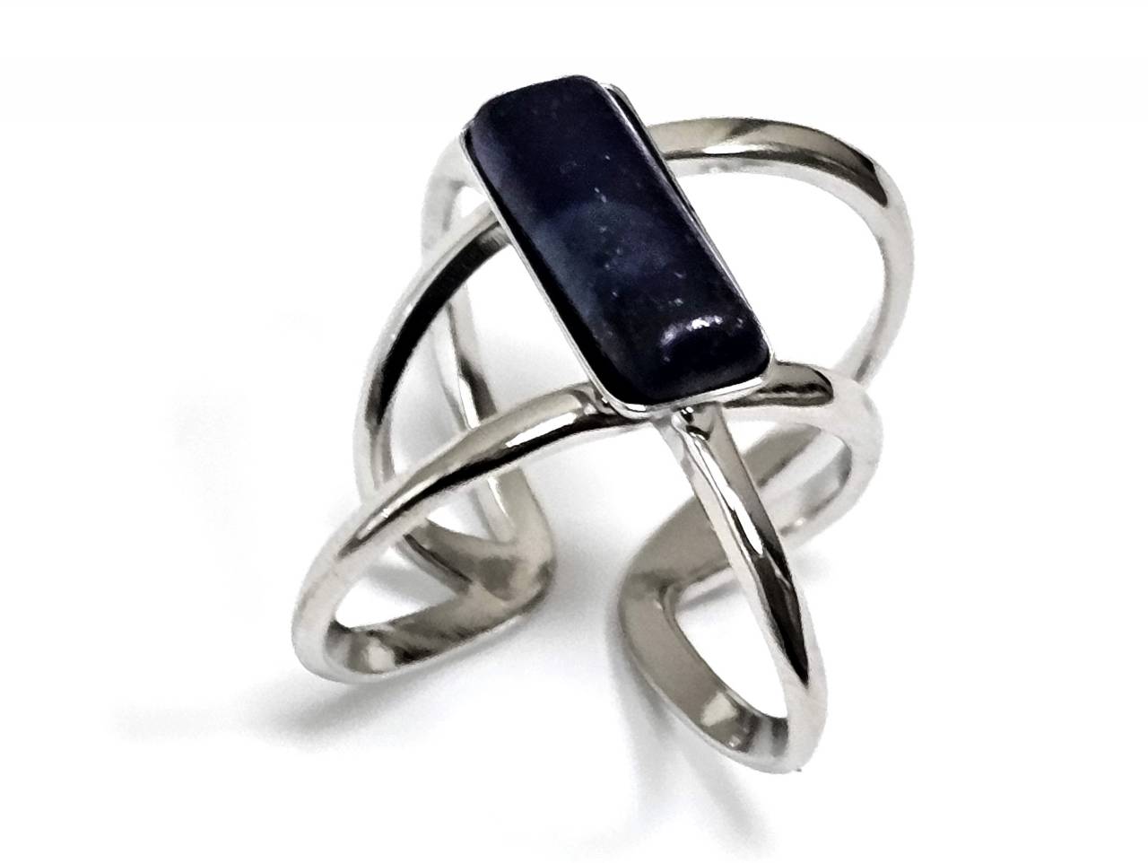 Δαχτυλίδι Πέτρα 316L, με Lapis σε χρώμα Ασημί