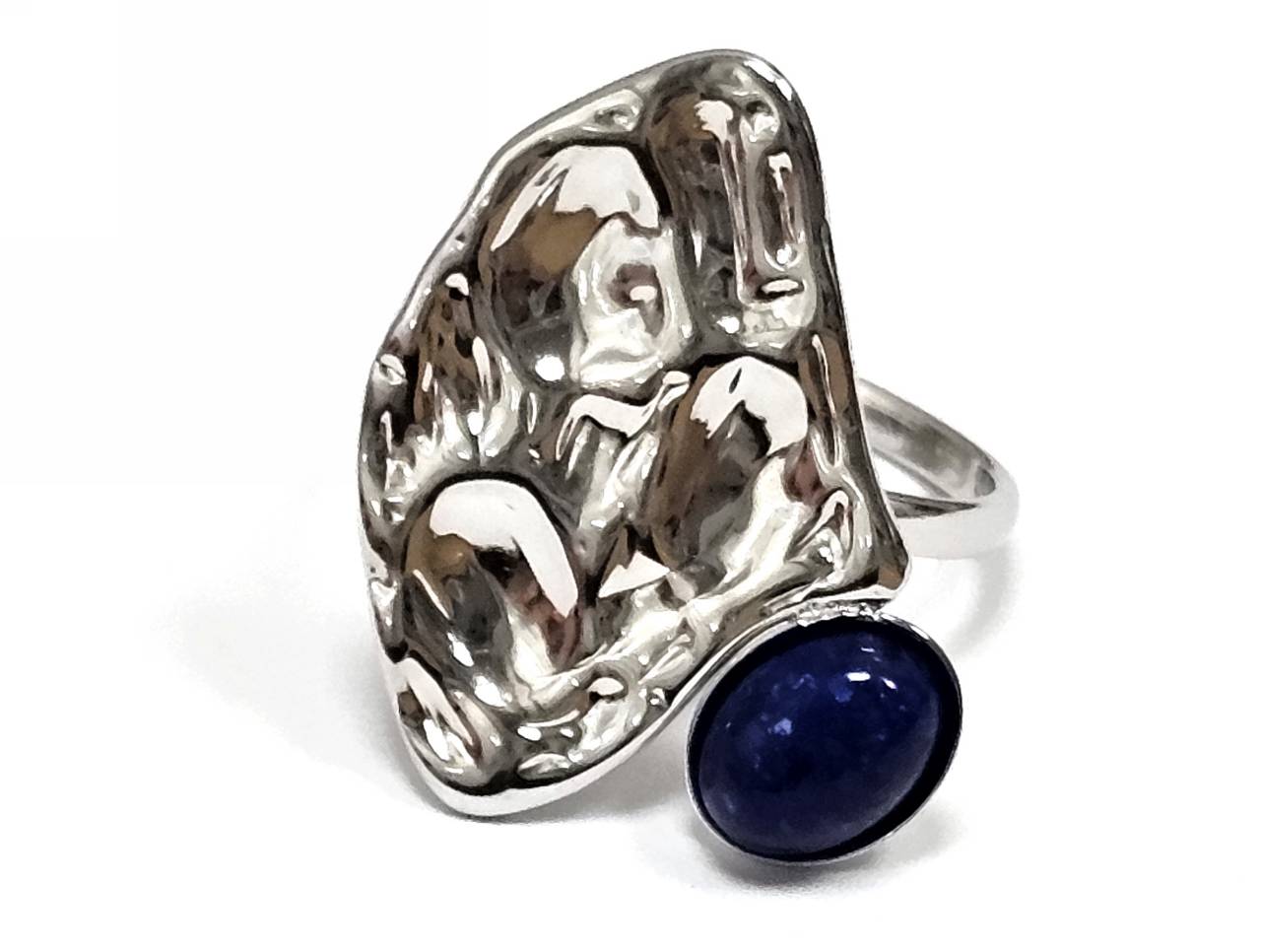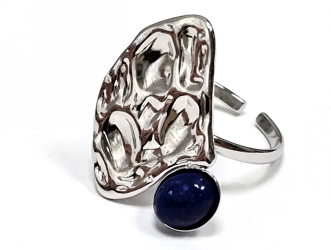 Δαχτυλίδι Πέτρα 316L, με Lapis σε χρώμα Ασημί