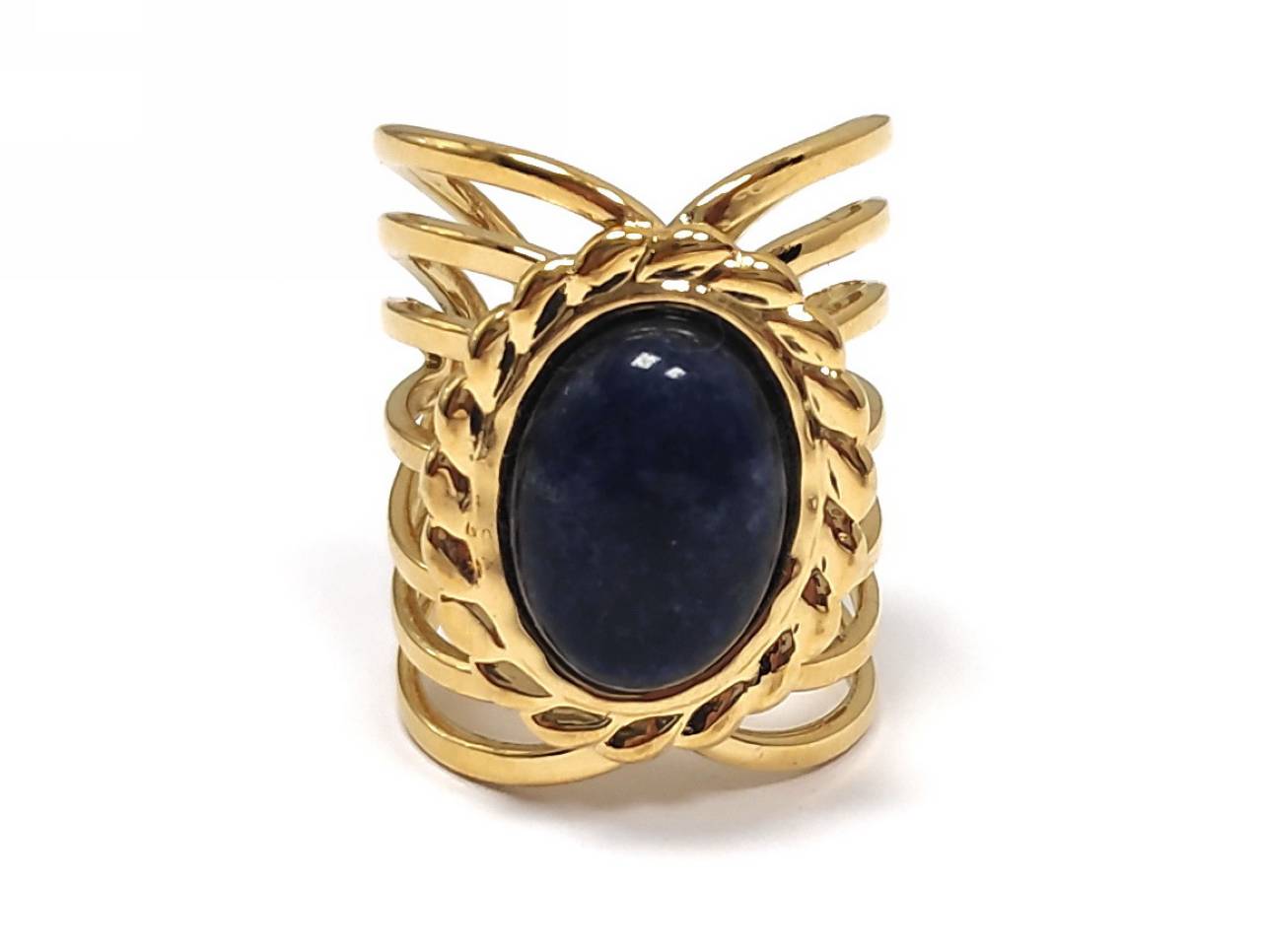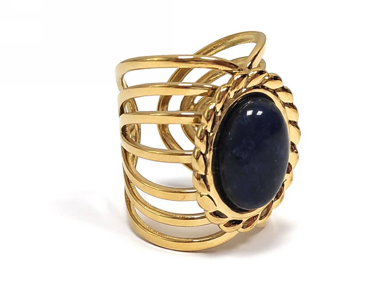 Δαχτυλίδι Πέτρα 316L, με Lapis σε χρώμα Χρυσαφί