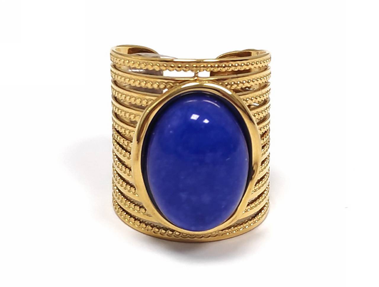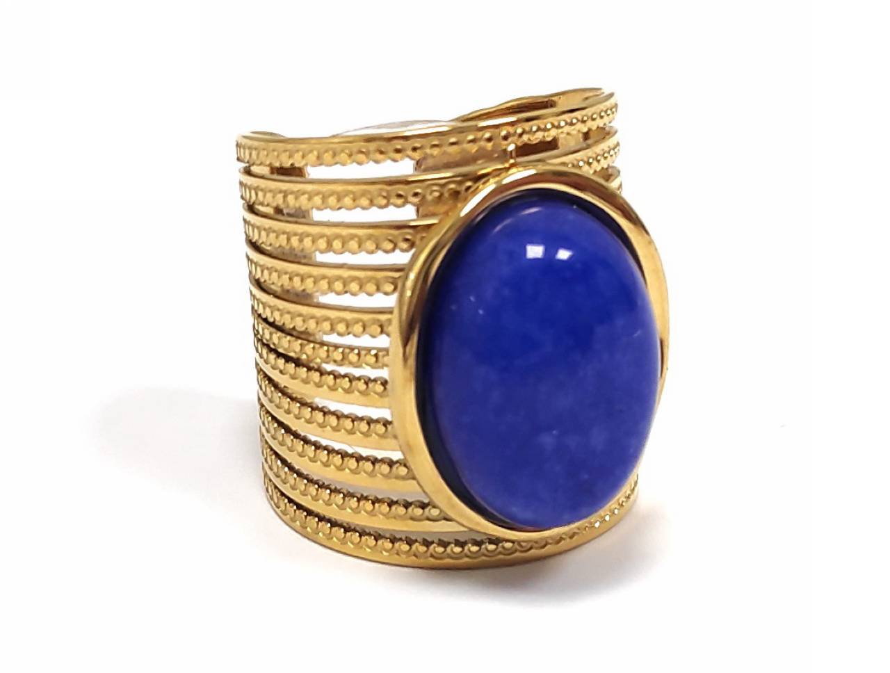 Δαχτυλίδι Πέτρα 316L, με Lapis σε χρώμα Χρυσαφί