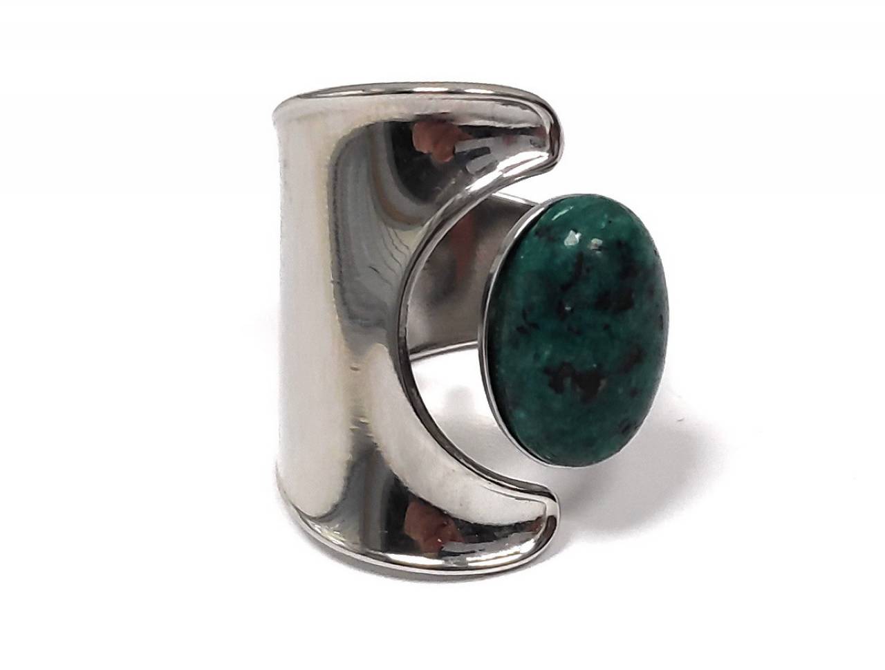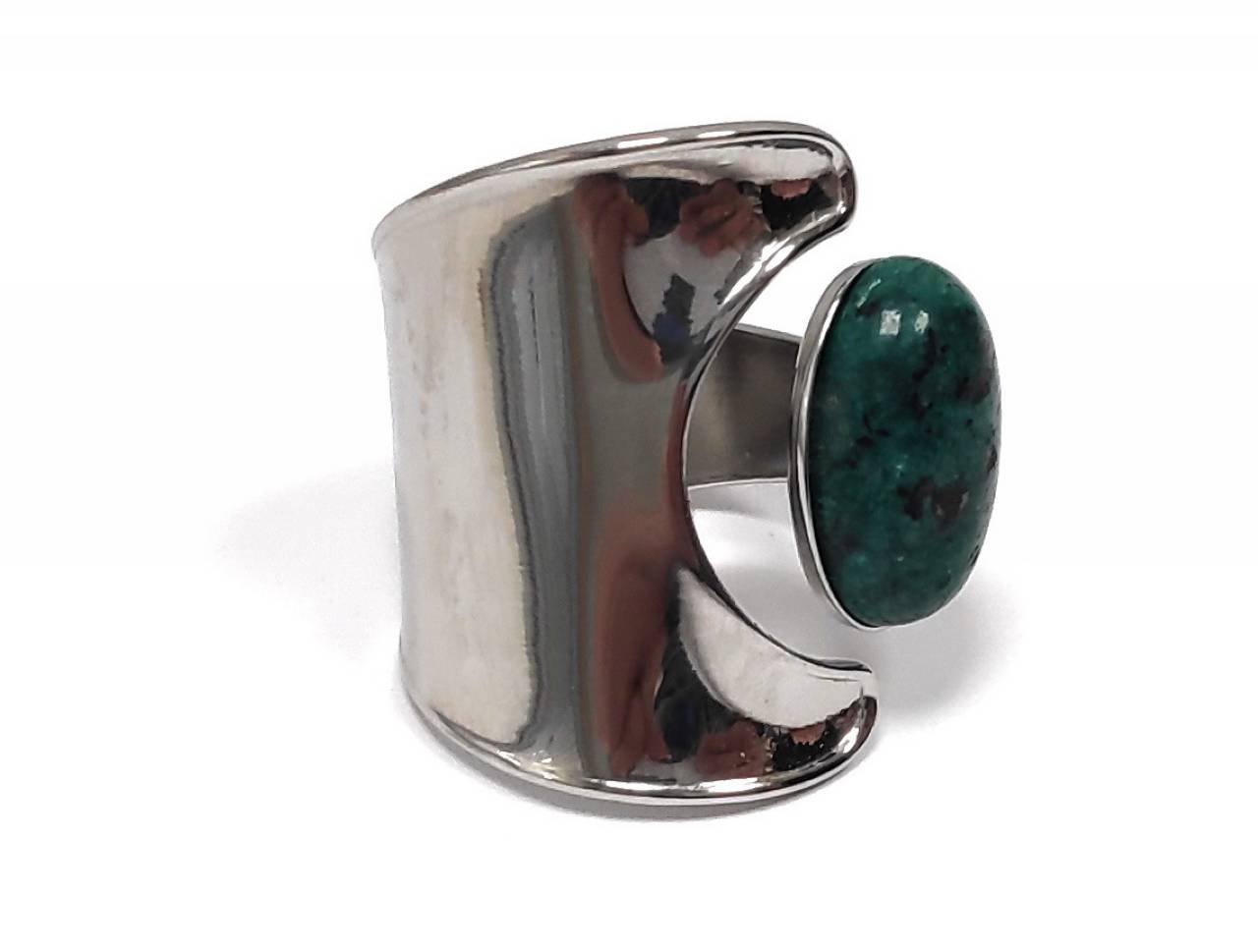 Δαχτυλίδι Πέτρα 316L, με μαλαχίτη σε χρώμα Ασημί