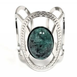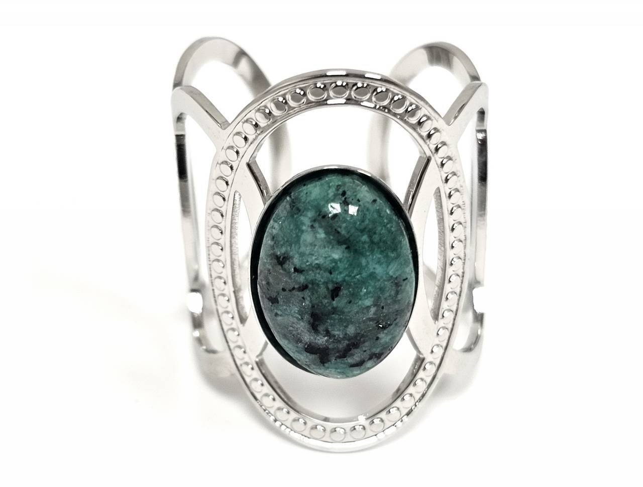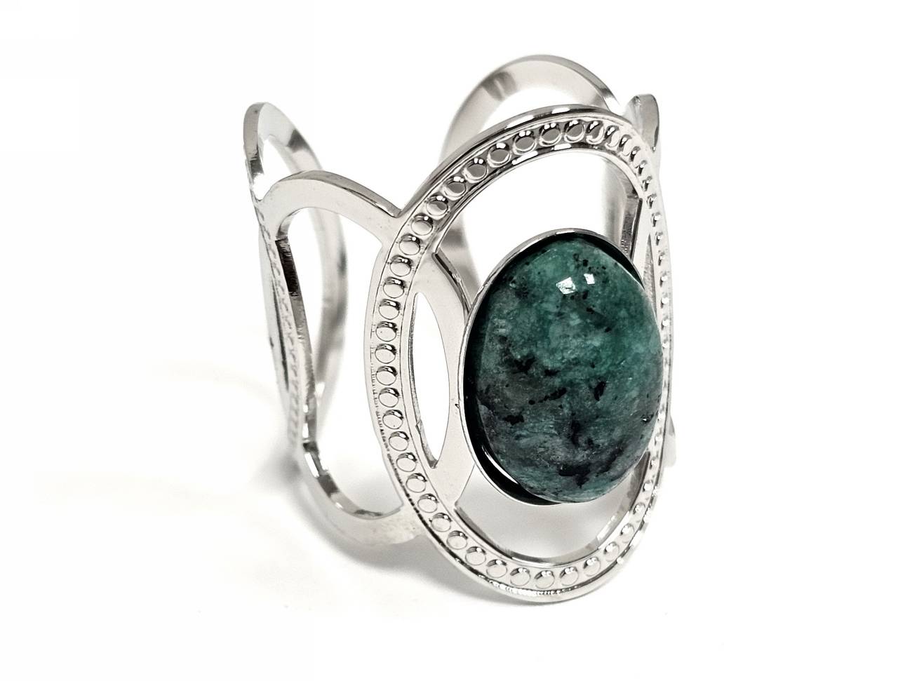 Δαχτυλίδι Πέτρα ατσάλι 316L, με μαλαχίτη σε χρώμα Ασημί