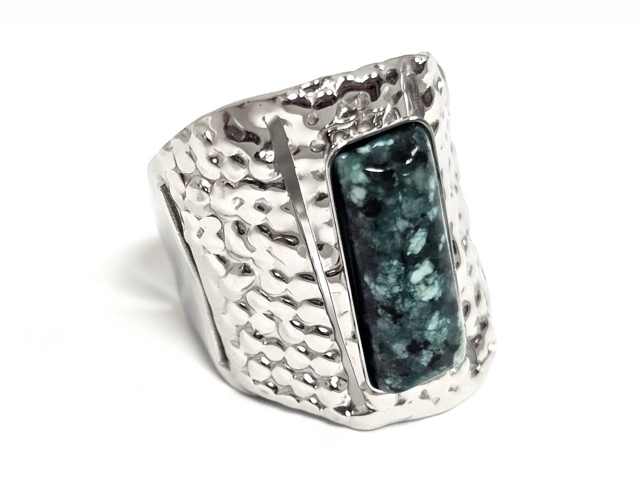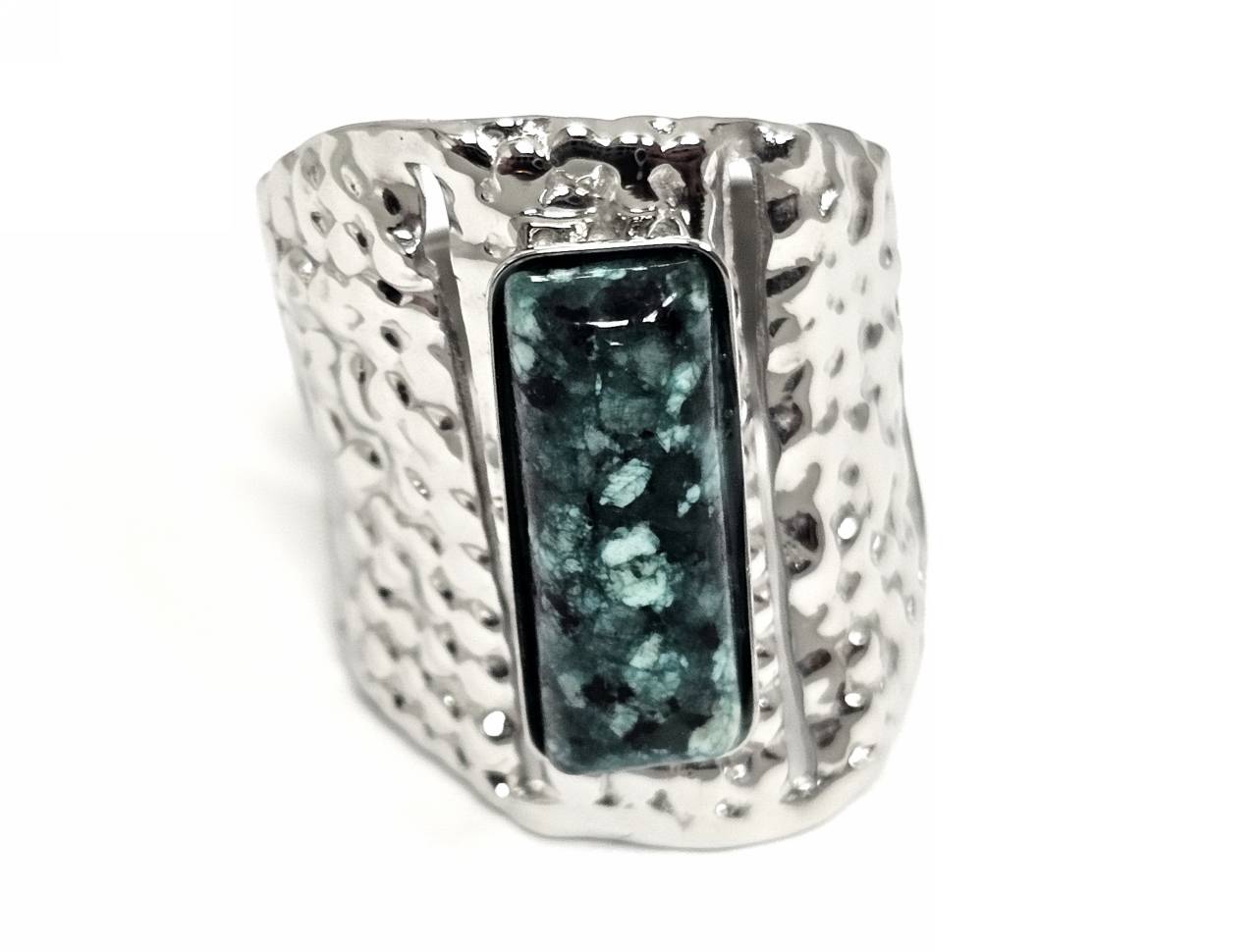 Δαχτυλίδι Πέτρα ατσάλι 316L, με μαλαχίτη σε χρώμα Ασημί
